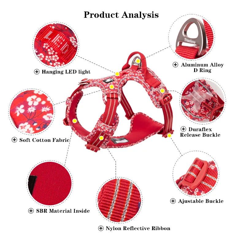 Truelove brand products focus on dog wearing comfort and ease of use, using aluminum alloy buckle production, making the product more lightweight, easy to put on and take off, strong and durable