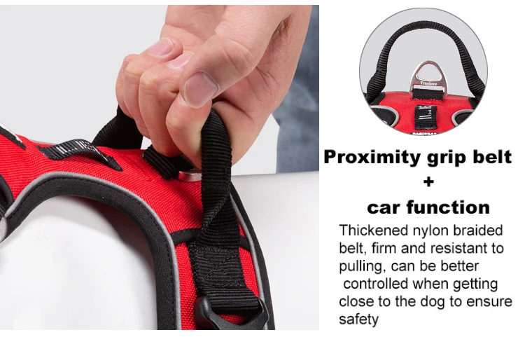 Producción de correa de nylon engrosada, sólida y resistente a tirones, y el perro muy juntos puede controlar mejor el movimiento del perro para garantizar la seguridad, en el coche se puede poner a través del cinturón de seguridad aquí para evitar que el perro corra alrededor en el coche