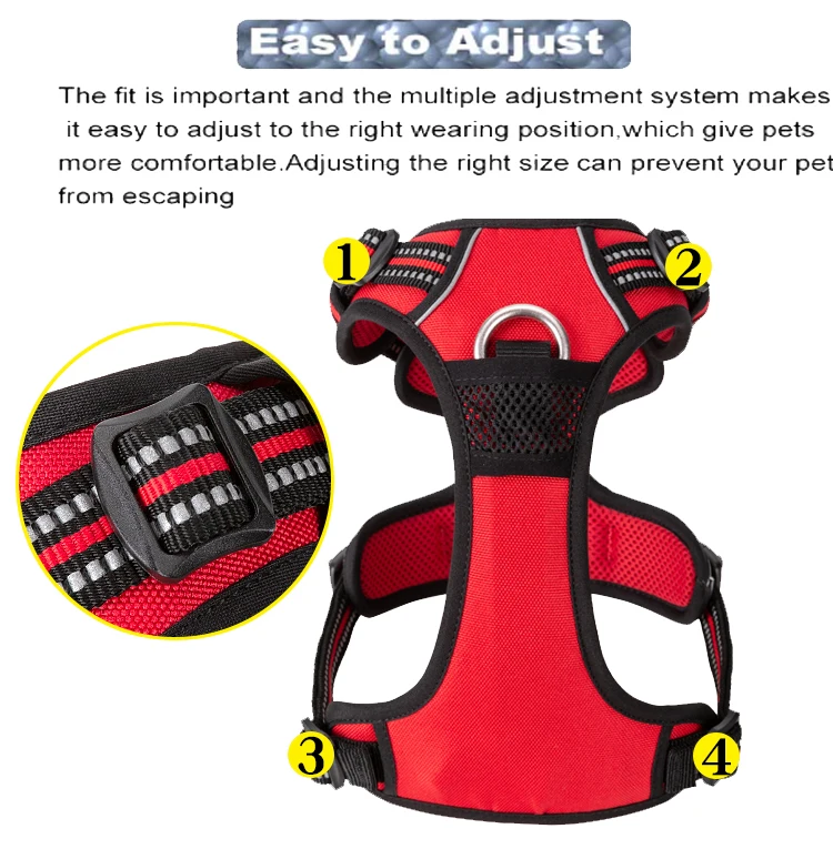 El ajuste es importante y el sistema de ajuste múltiple facilita el ajuste a la posición de uso correcta, lo que brinda a las mascotas más cómodas. Ajustar el tamaño correcto puede evitar que su mascota se escape