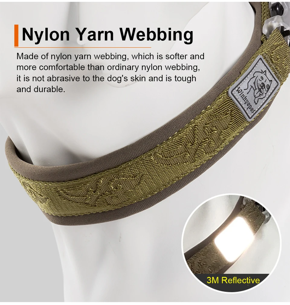 El arnés para mascotas está hecho de correas de hilo de nailon, en comparación con las correas de nailon normales, es más suave y no es abrasivo para la piel del perro, Y este material hace que las correas del arnés para mascotas sean más resistentes y duraderas.