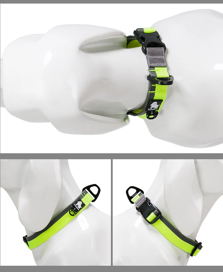 Hecho de material de correas de alta densidad, el ancho y el grosor son perfectos, cómodos y transpirables, resistentes y resistentes a los tirones, evitando al mismo tiempo el desgaste de la piel de la mascota durante el uso.