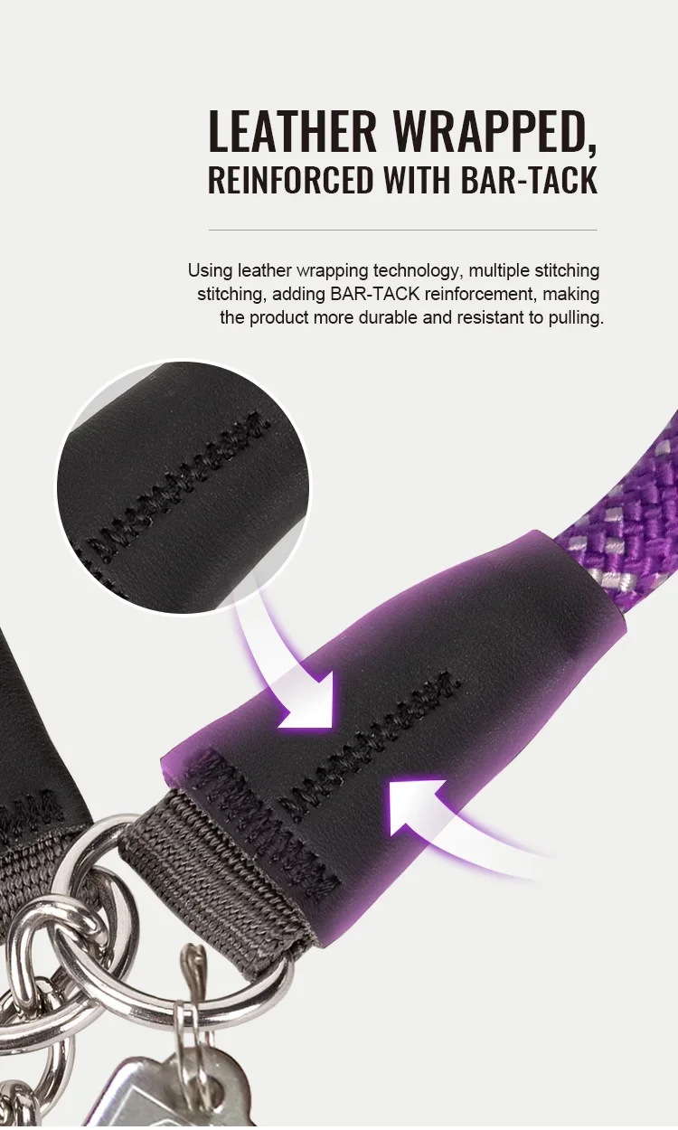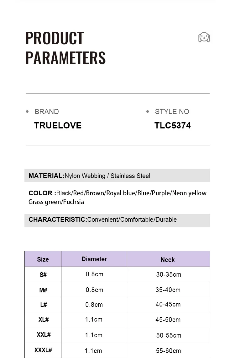 Using high-quality, high-density, high-cost nylon yarn-dyed webbing as raw material, the material is softer, more comfortable and tougher than ordinary nylon webbing. And can avoid damage to pet skin and hair during use.