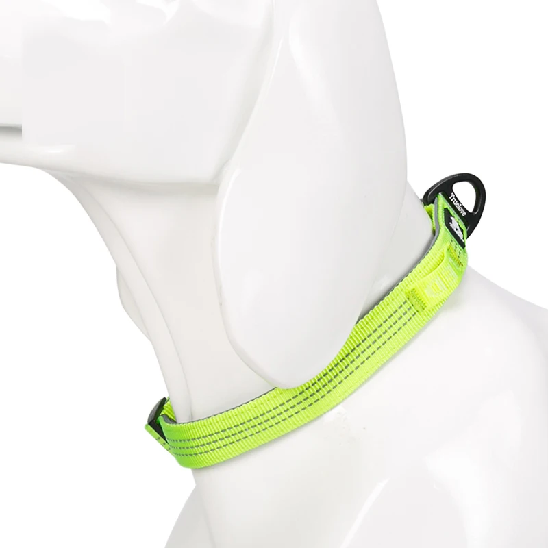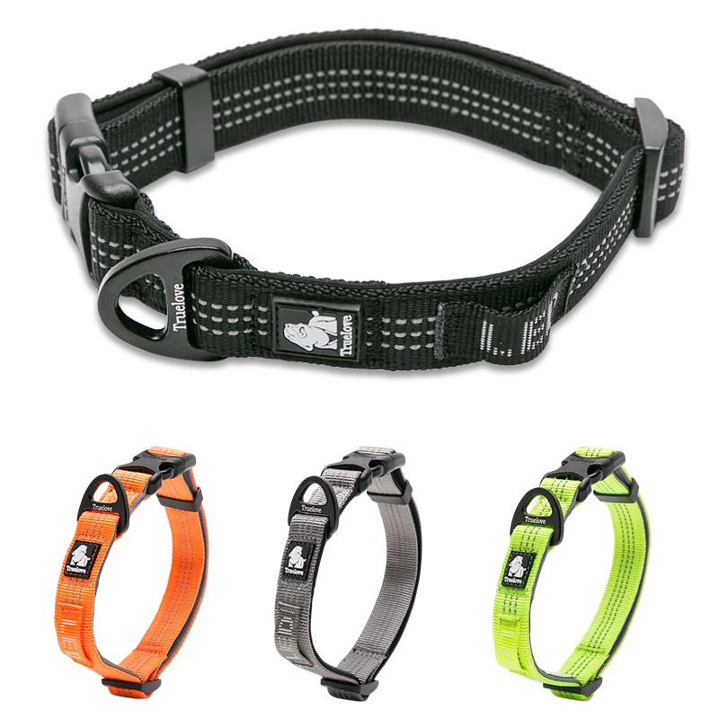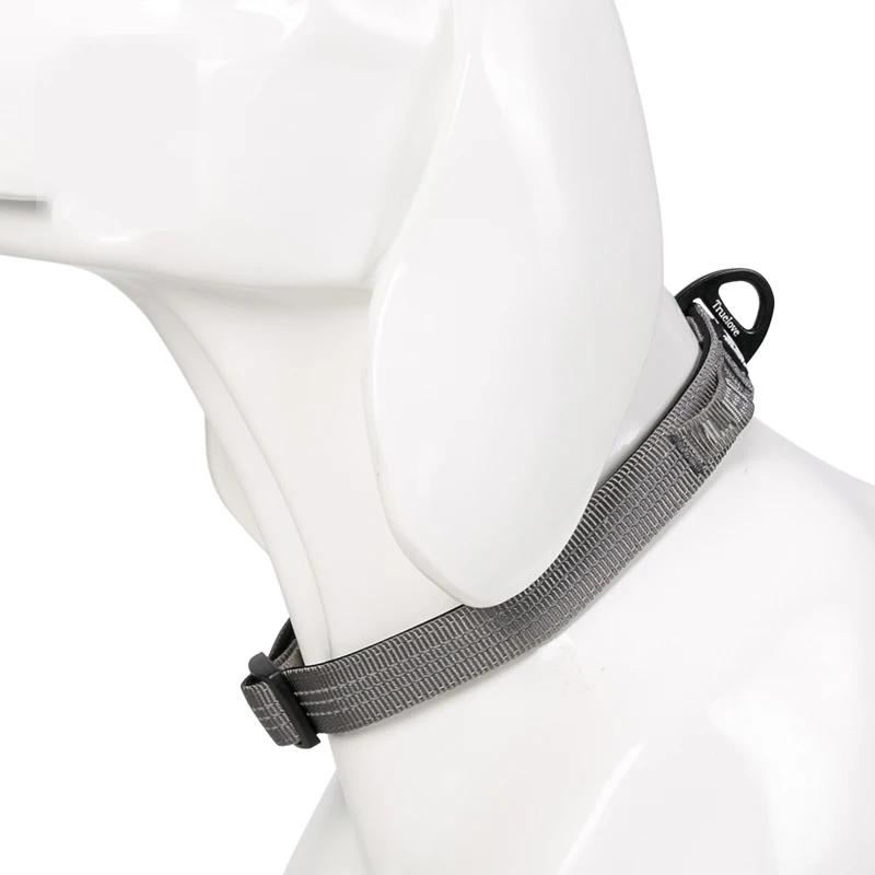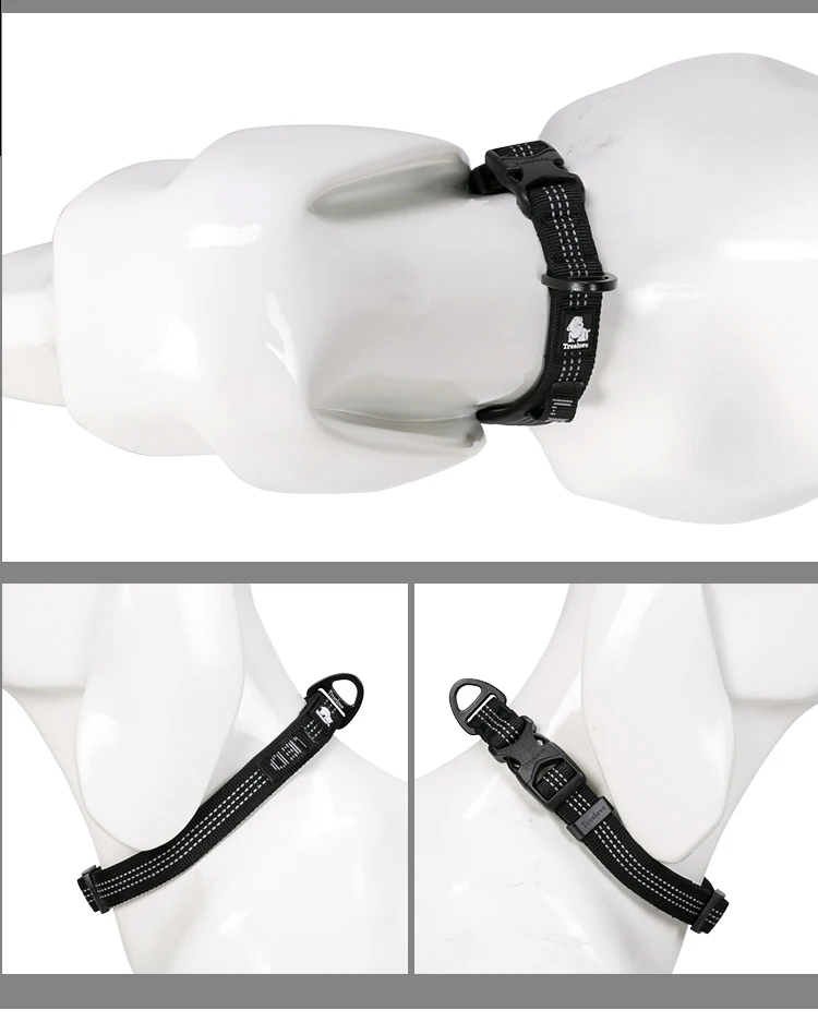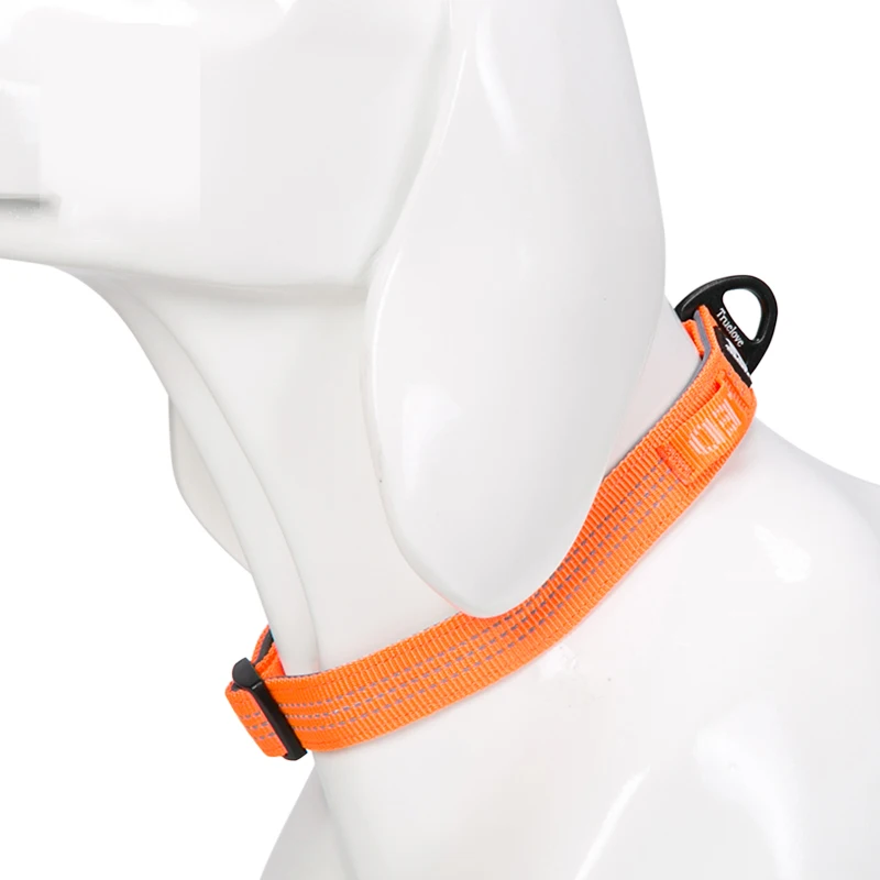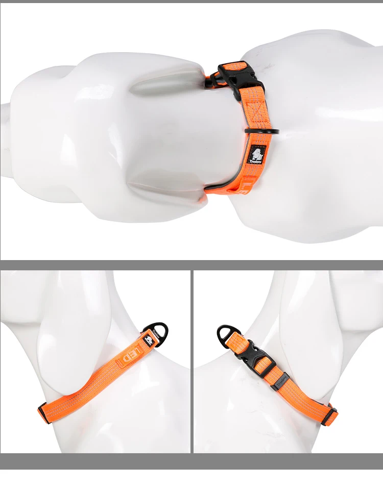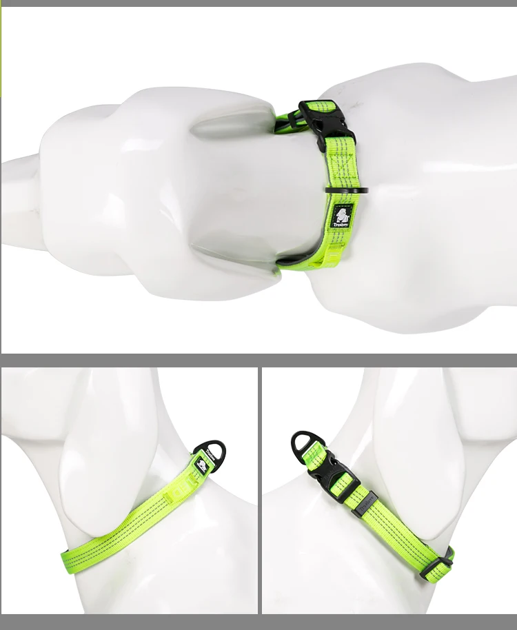 El collar para mascotas está hecho de correas de nailon, en comparación con las correas de poliéster comunes, es más suave y no es abrasivo para la piel del perro, y este material hace que las correas del collar para mascotas sean más resistentes y duraderas.