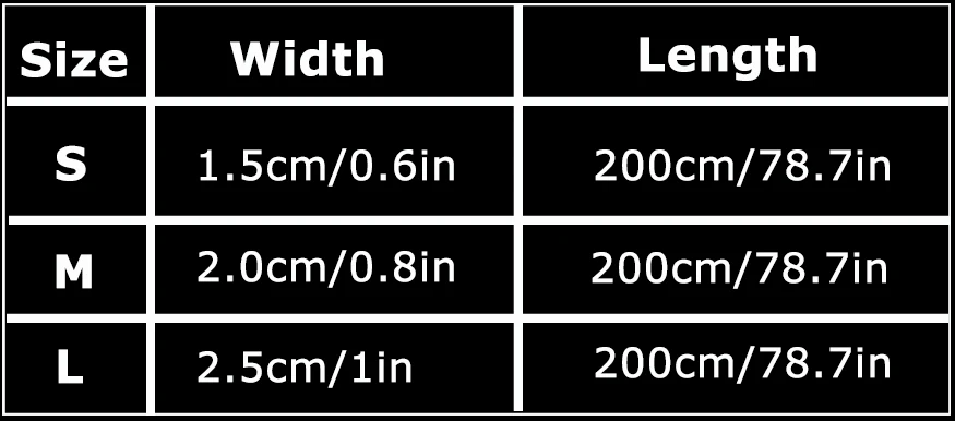 L 2,5 cm/1 pulgada 200 cm/78,7 pulgadas