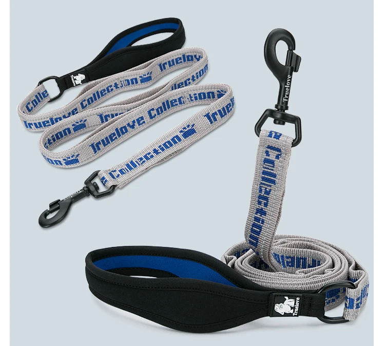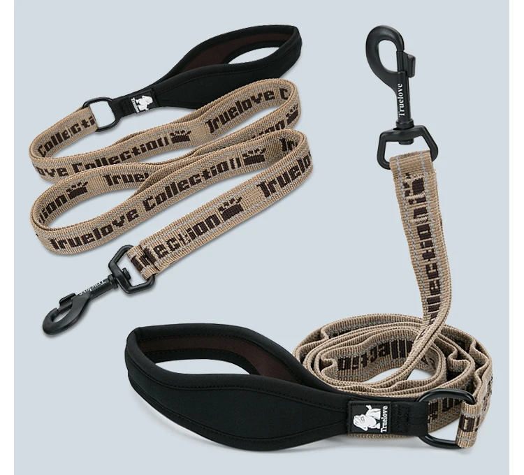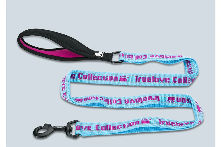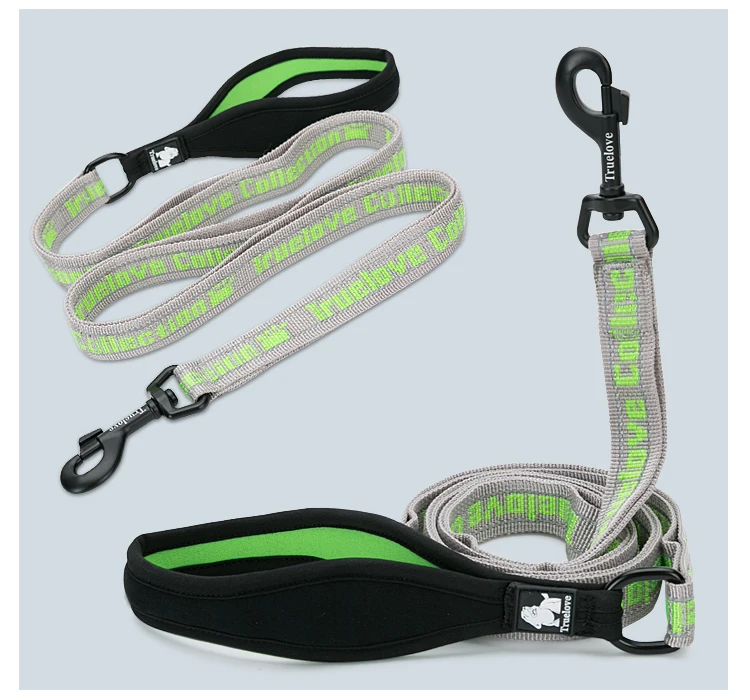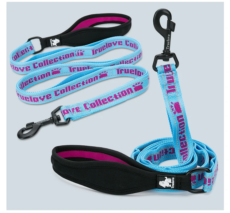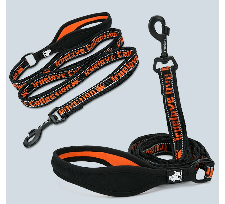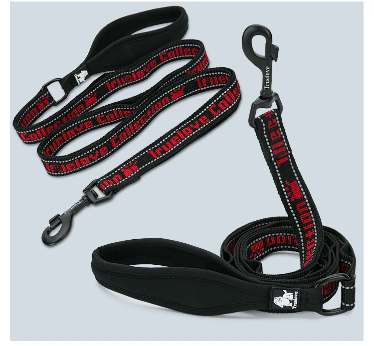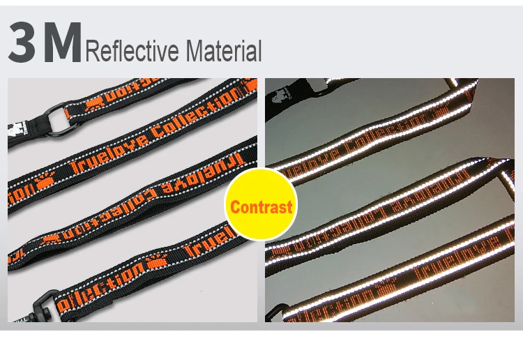 La correa para mascotas está hecha de correas de hilo de nailon, en comparación con las correas de nailon comunes, es más suave y no abrasiva para la piel del perro, y este material hace que las correas de la correa para mascotas sean más resistentes y duraderas.