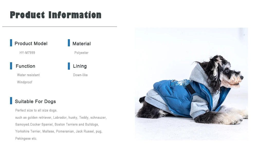 La capa superficial resistente al agua puede evitar eficazmente que el agua y la nieve mojen el cuerpo del perro y también puede bloquear la temperatura corporal del perro.