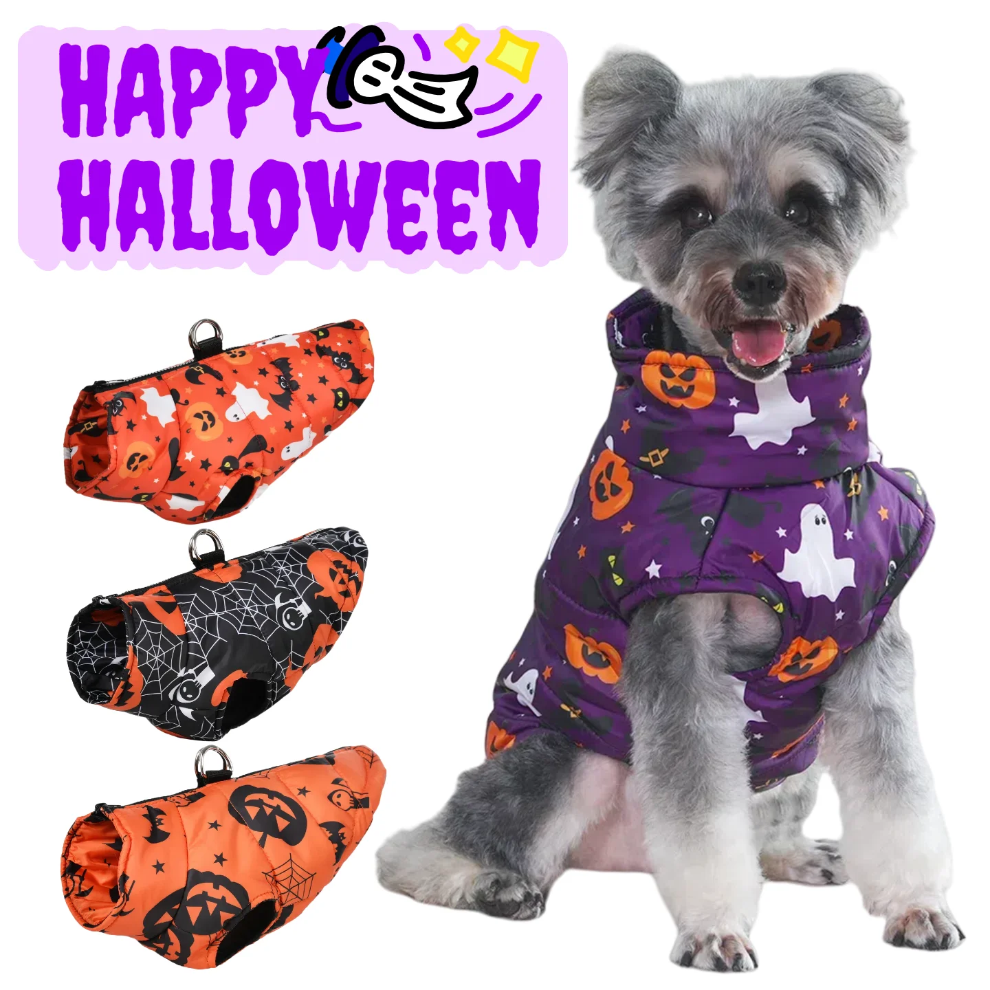 Ropa de invierno para perros, chaqueta para mascotas pequeñas y medianas, disfraz de fiesta para cachorros, abrigo cálido con estampado de calabaza para mascotas, chaleco Schnauzer, abrigo