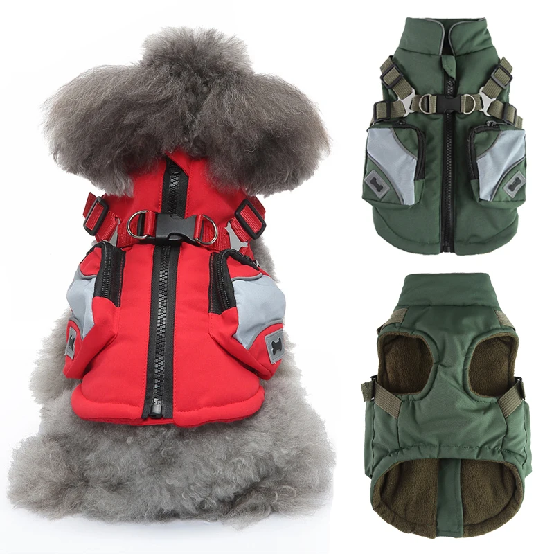 Winter Dog Jacket Harness 2 in 1 Fashion Dog Coat with Pocket for Small Dogs Pomeranian Chihuahua Warm Waterproof Puppy Clothes