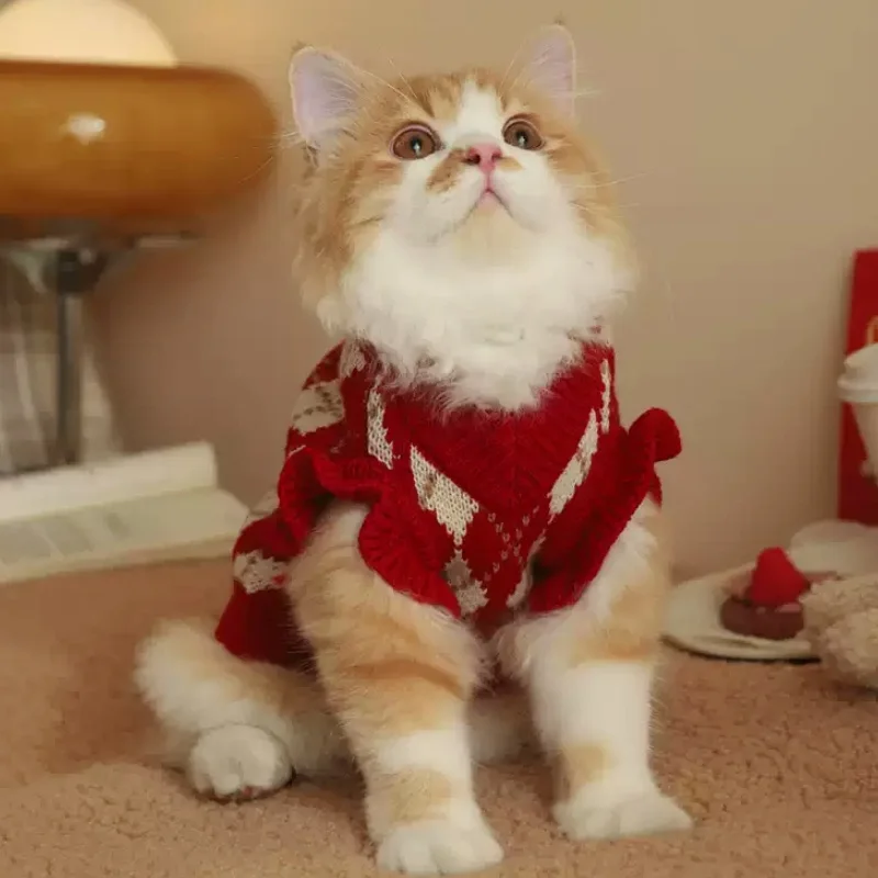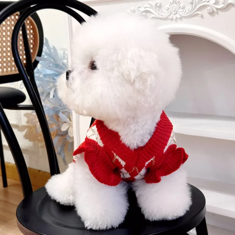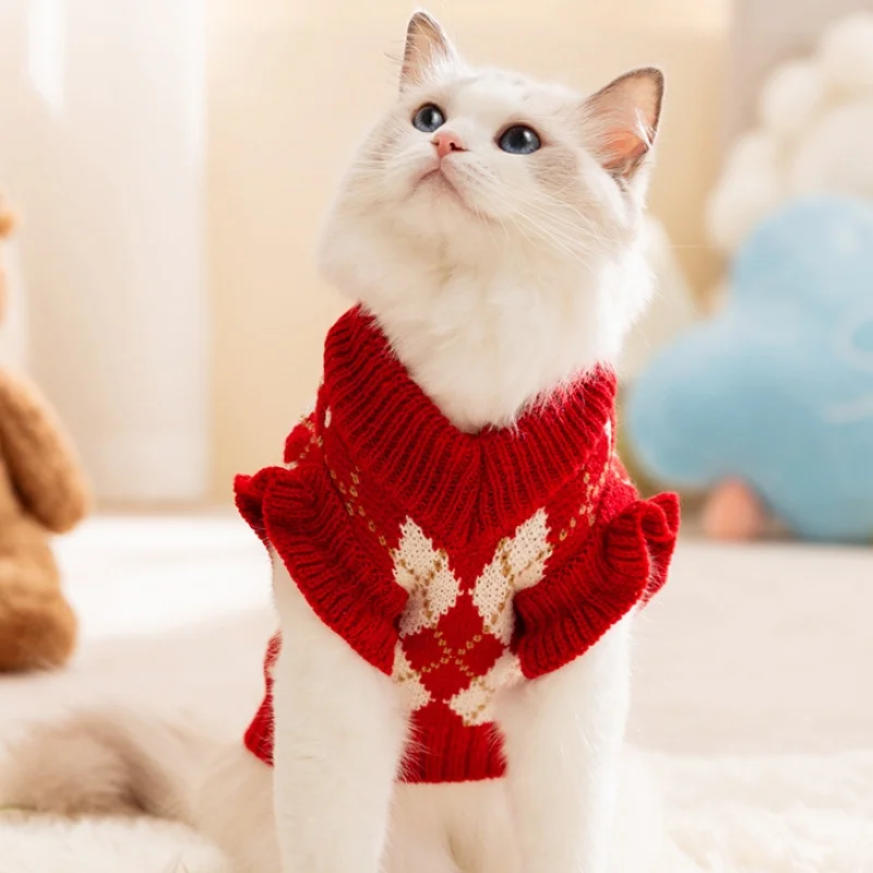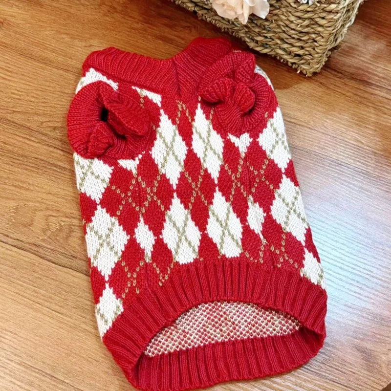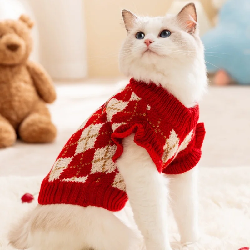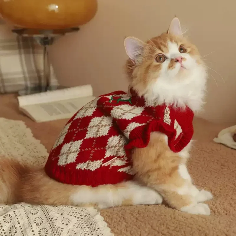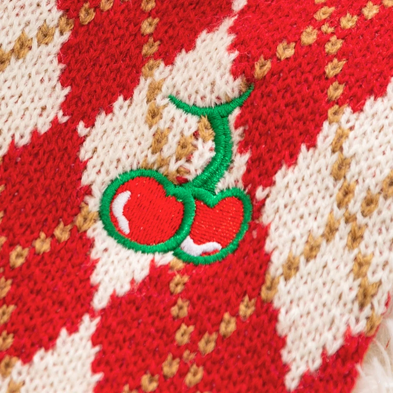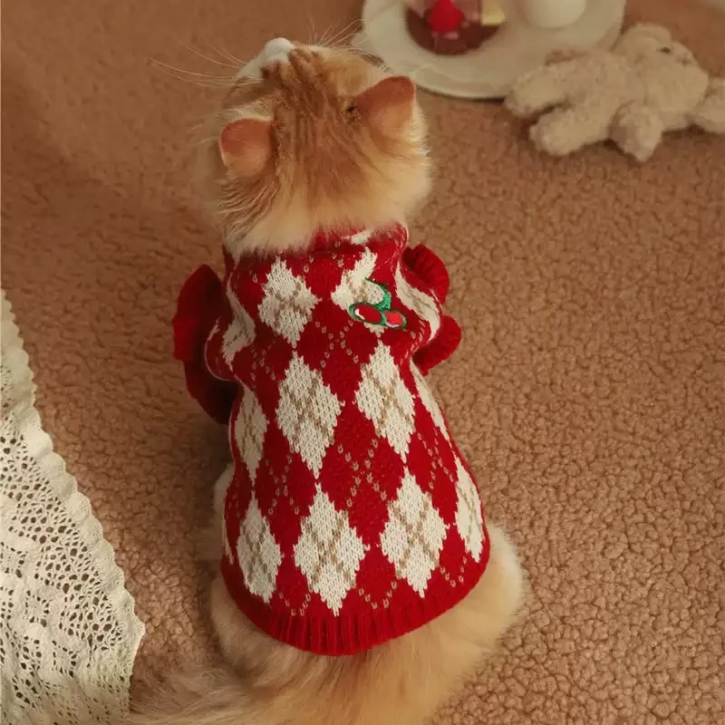 Suéter de punto para perro de invierno, ropa suave para perro, suéter bonito a cuadros para cachorros, jerseys para gatos con estampado de cerezas, ropa cálida para mascota con cuello alto y caniche