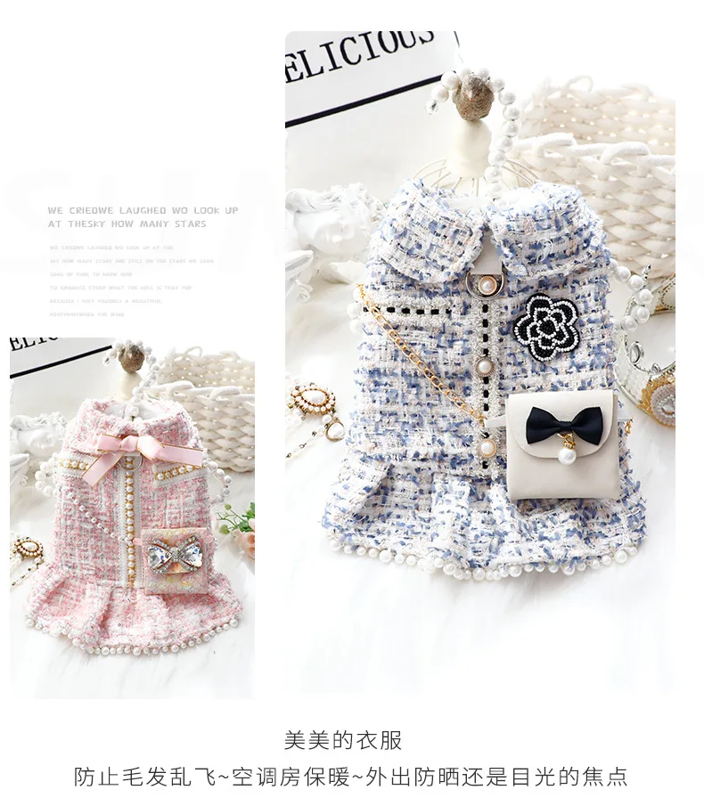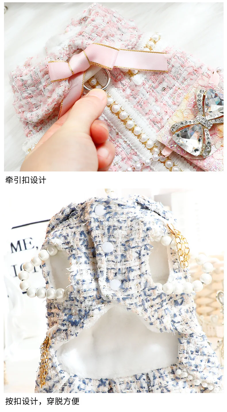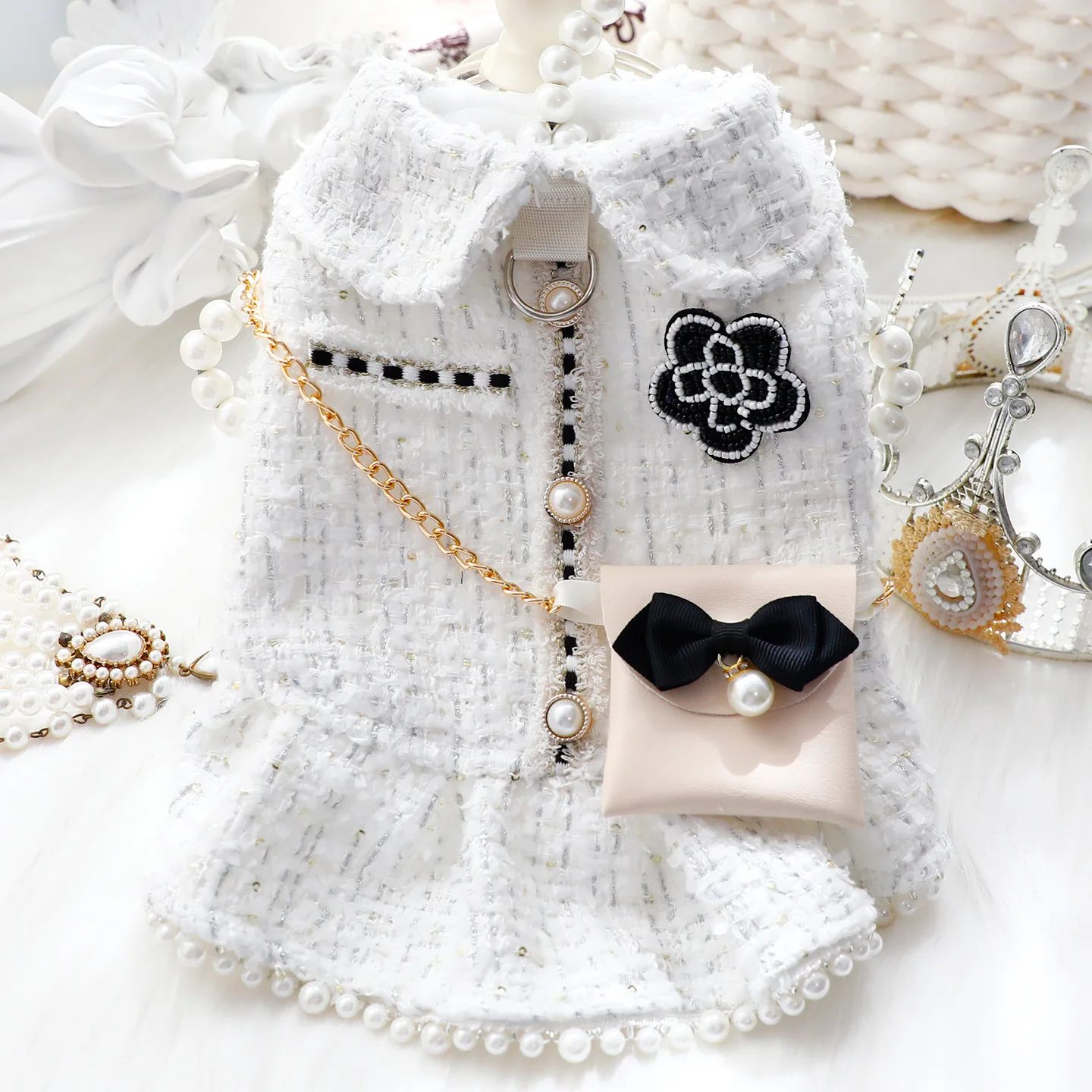 Winter Fall Pet Clothes, Luxury Princess Dress With Pearl Bowknot For Small Dogs & Cats - Perfect For Bichon Frise, Schnauzer