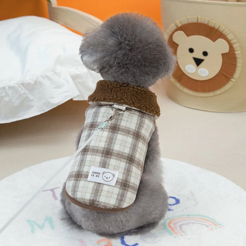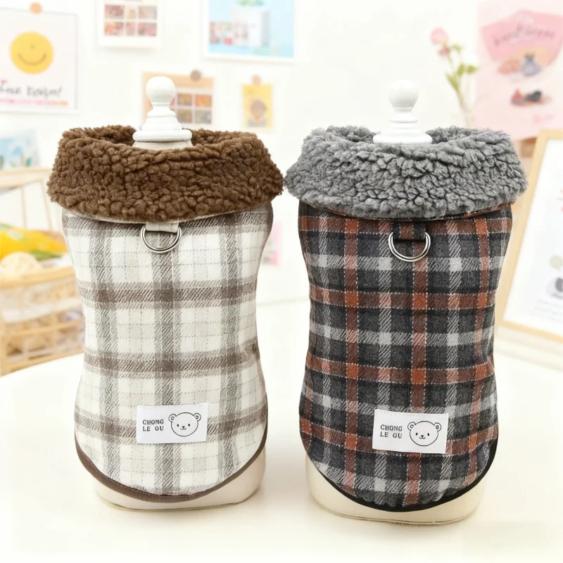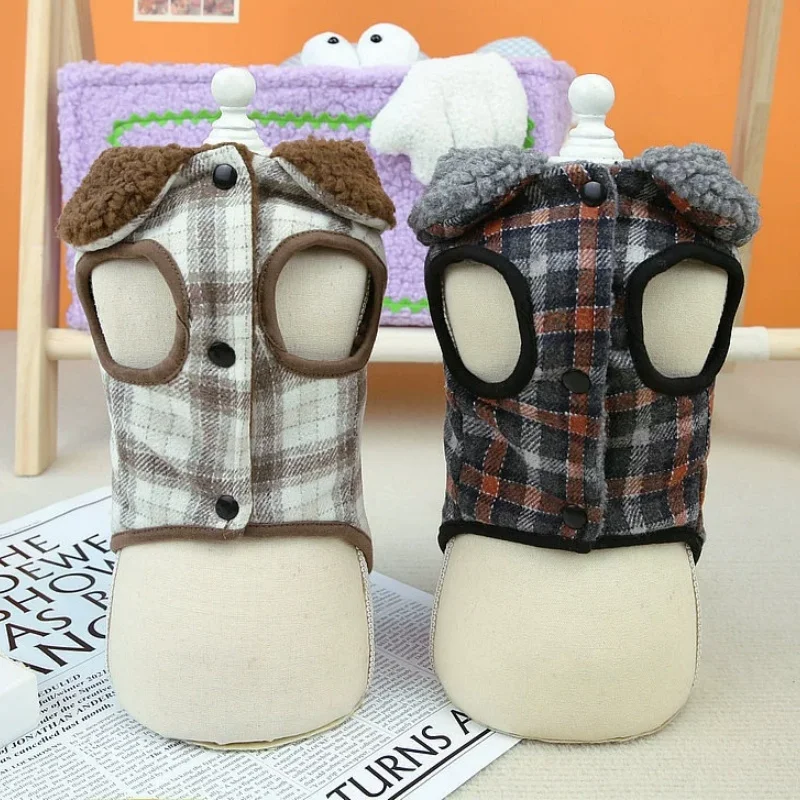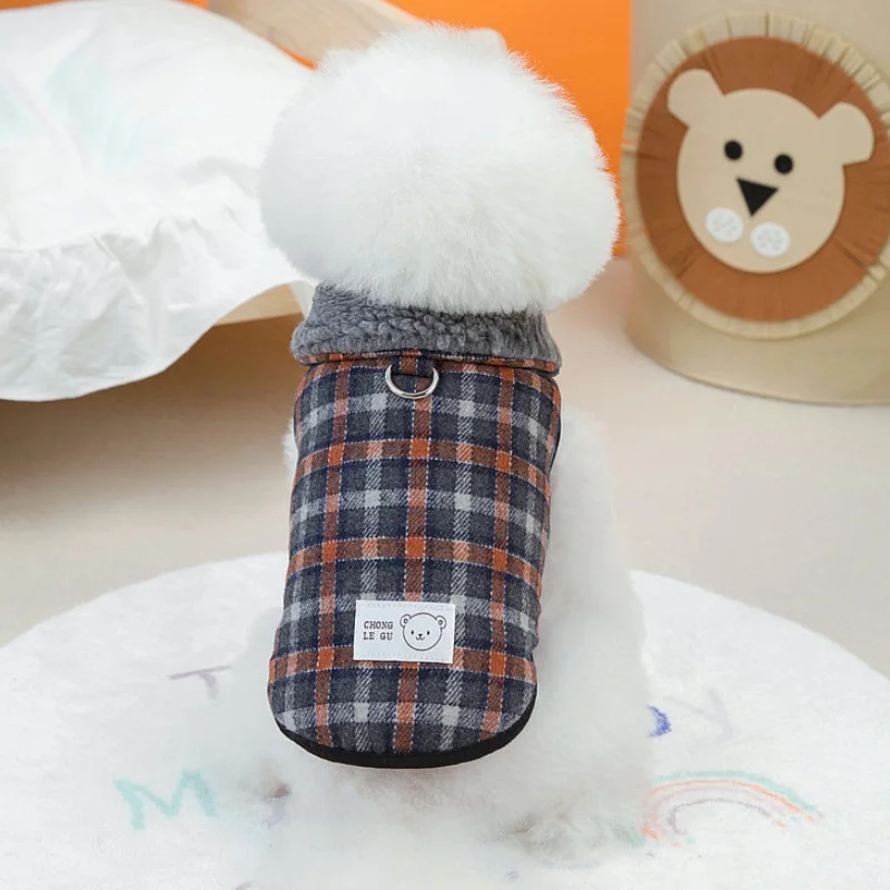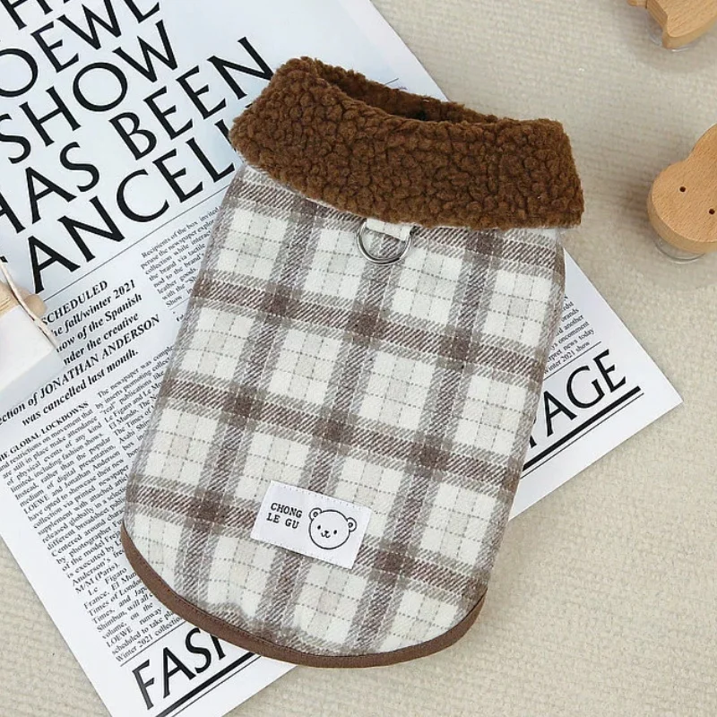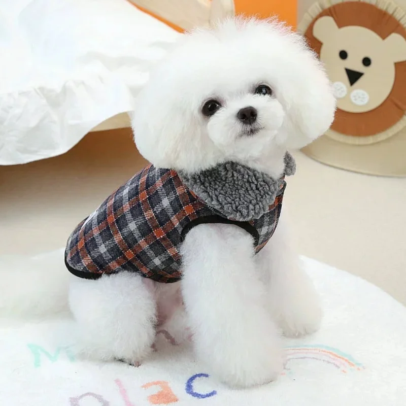 Chaleco de felpa para perro de invierno, chaqueta de lujo, ropa para perros, cárdigan suave y cálido para cachorros, chaqueta de gato a cuadros bonita, abrigo para mascota, disfraz para perro