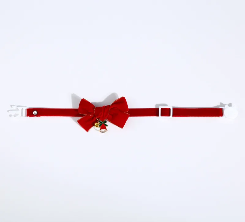 Yule-collar con hebilla de seguridad ajustable para gato, perro y mascota, Gargantilla con lazo de terciopelo rojo dorado
