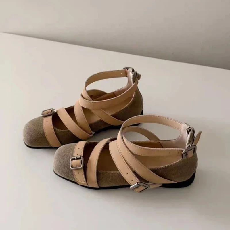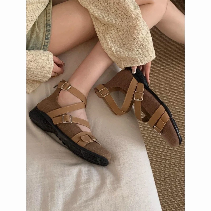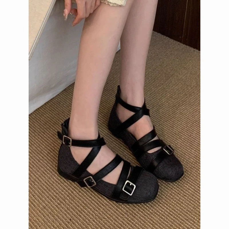 Zapatillas de Ballet con punta redonda para mujer, zapatos de bailarina con cinturón y hebilla estilo Ins, calzado ligero y cómodo de ocio para niña 2025