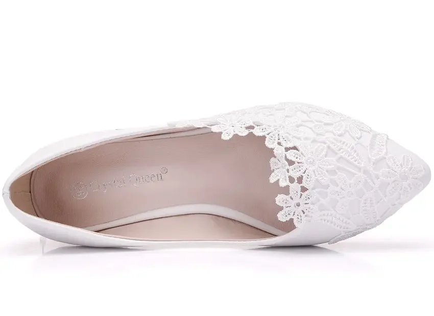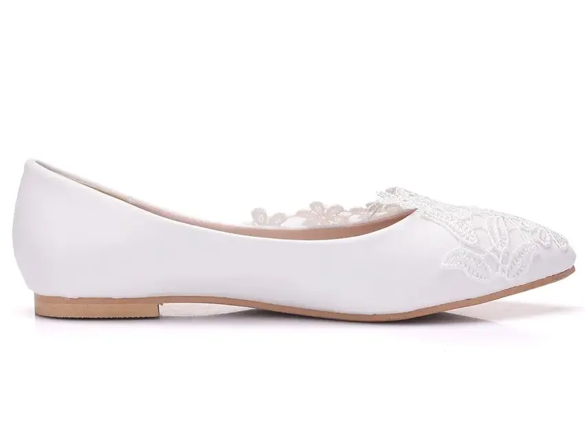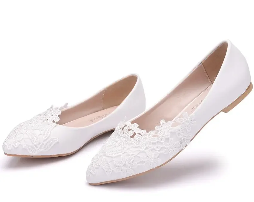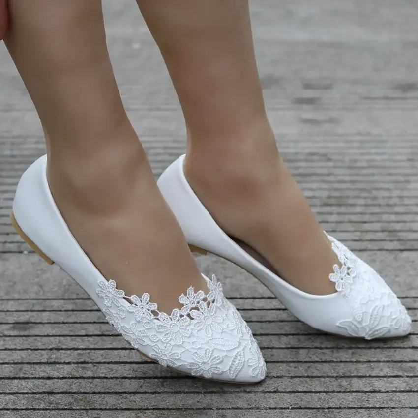 Zapatillas de Ballet de verano, zapatos de boda de novia de encaje blanco, tacón bajo plano, informales sin tacones, zapatos de vestir para mujer, zapatos dulces para mujer