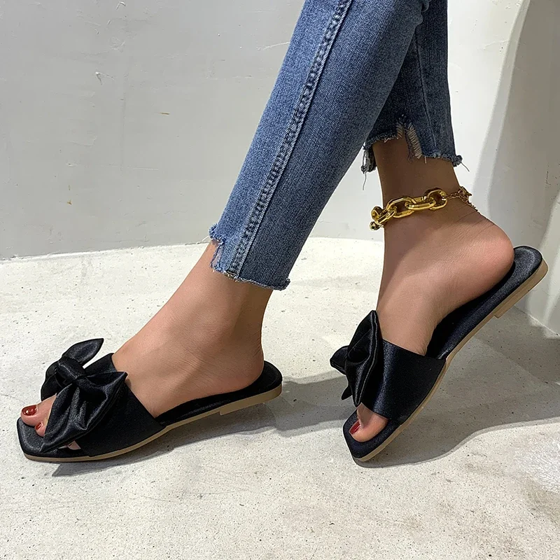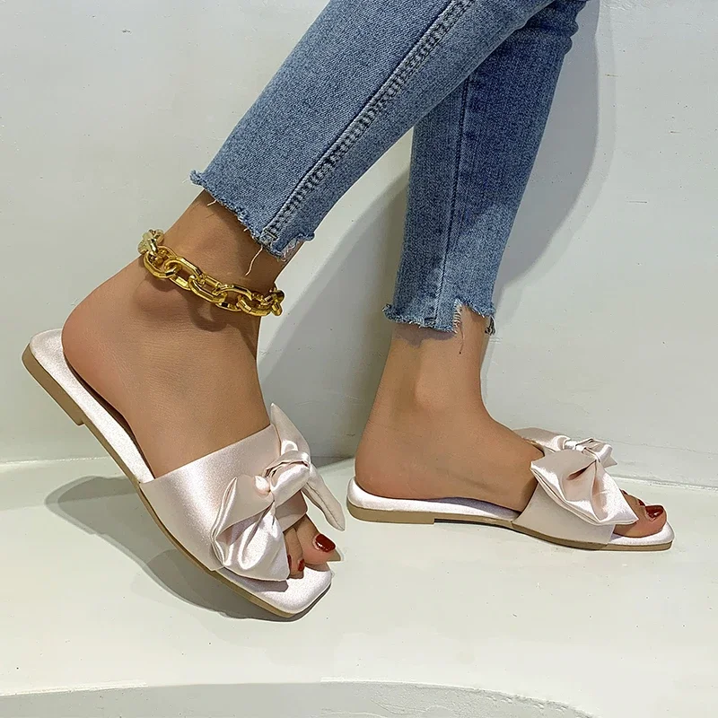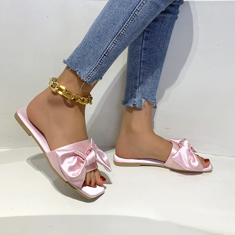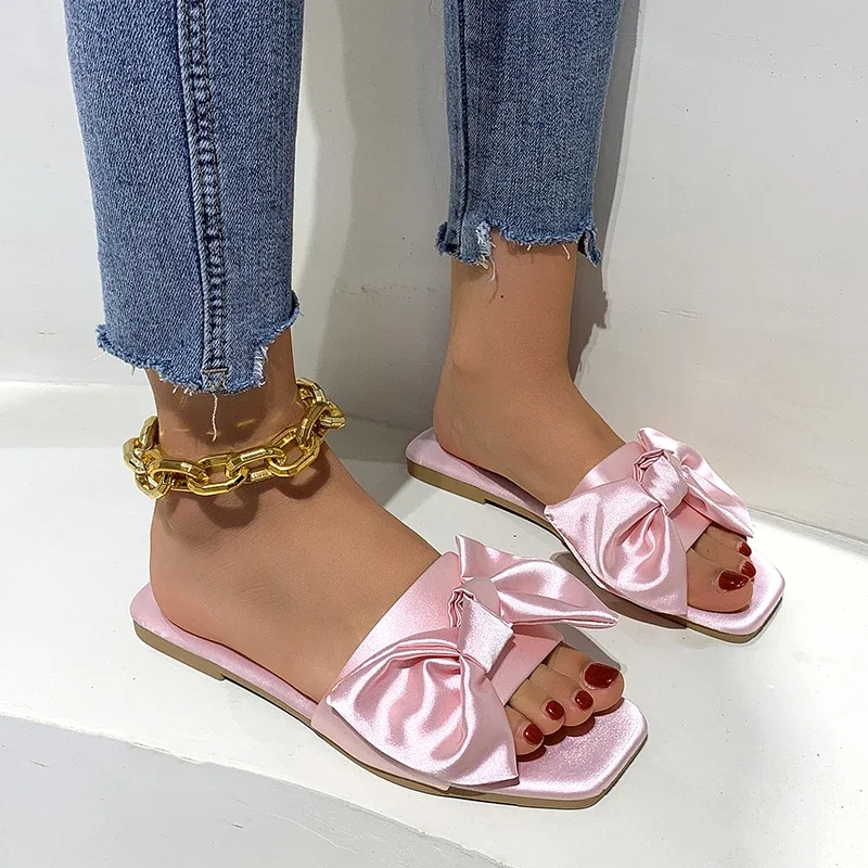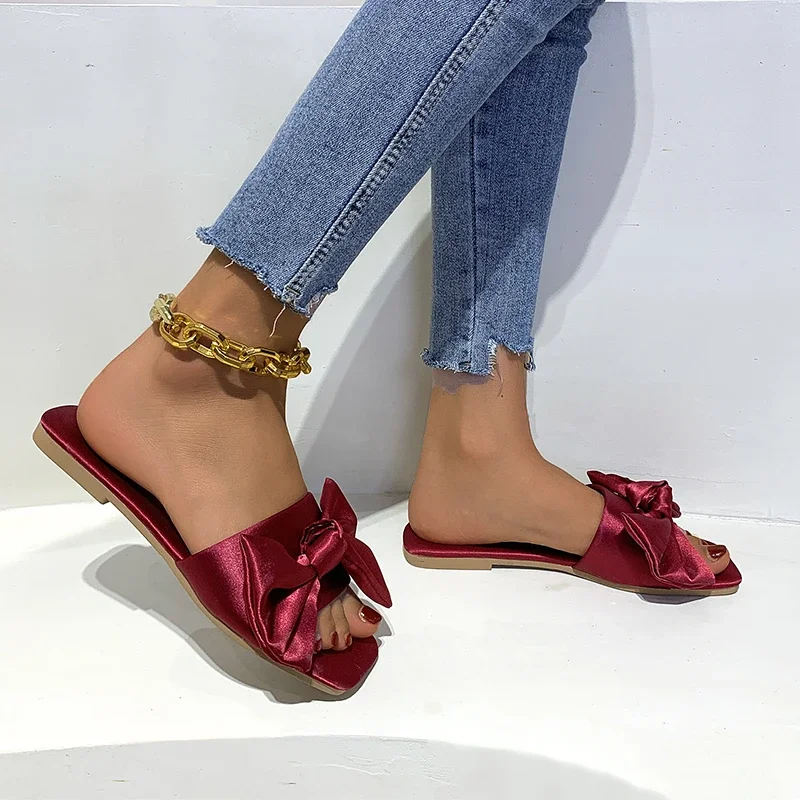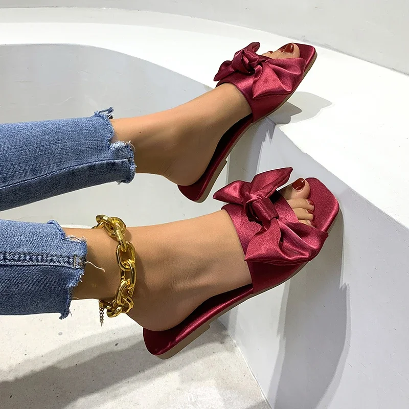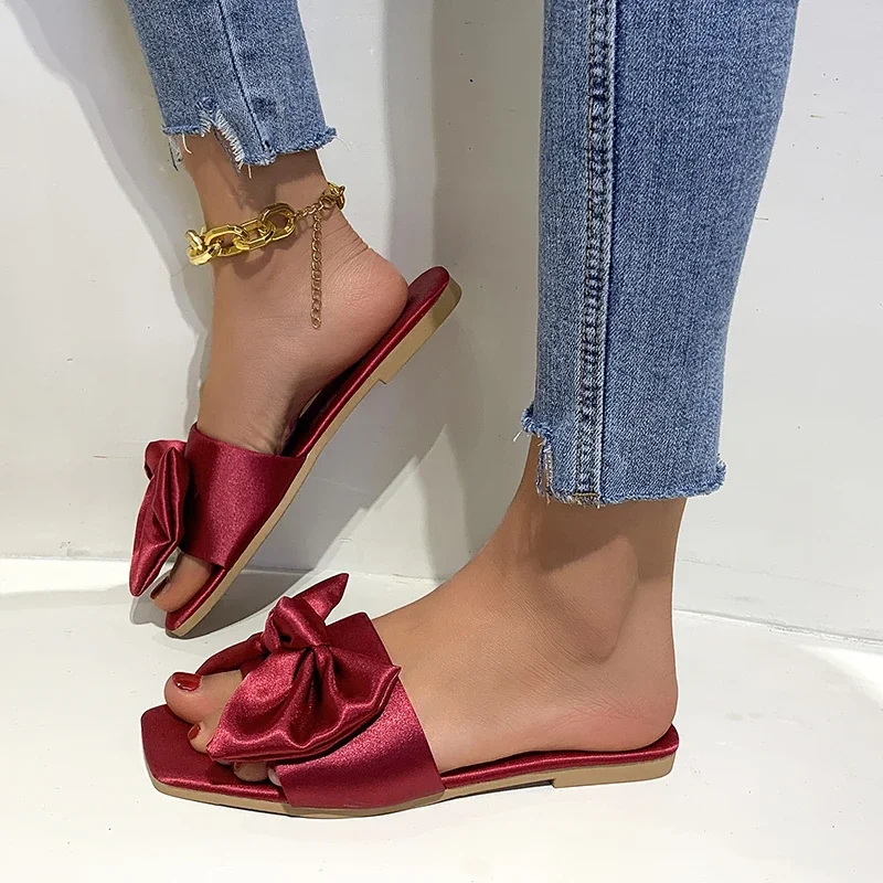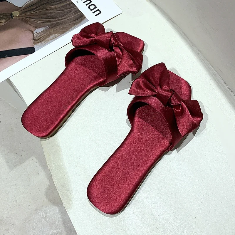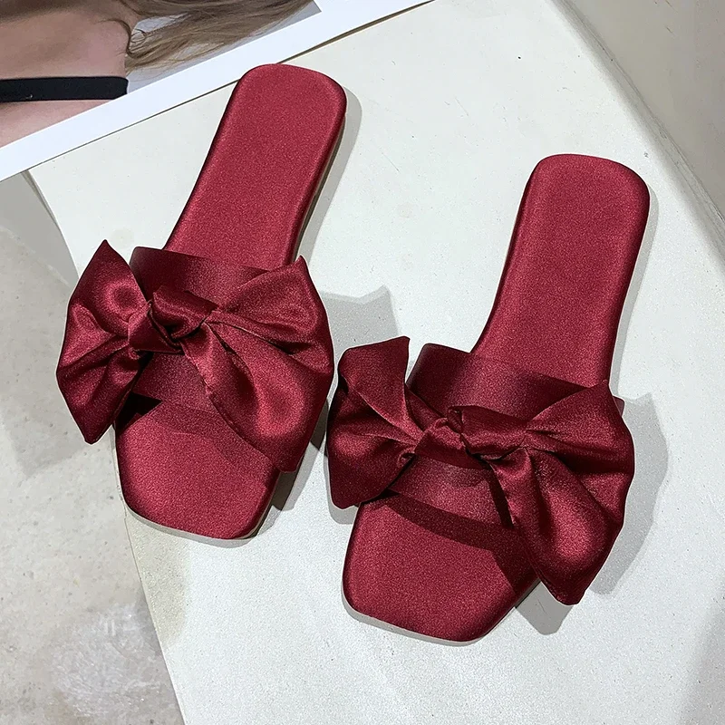 Zapatillas de boda rojas, sandalias para mujer, zapatos de verano para mujer, zapatillas de dama de honor de suela suave de satén, sandalias de Color sólido para mujer, novedad de 2025