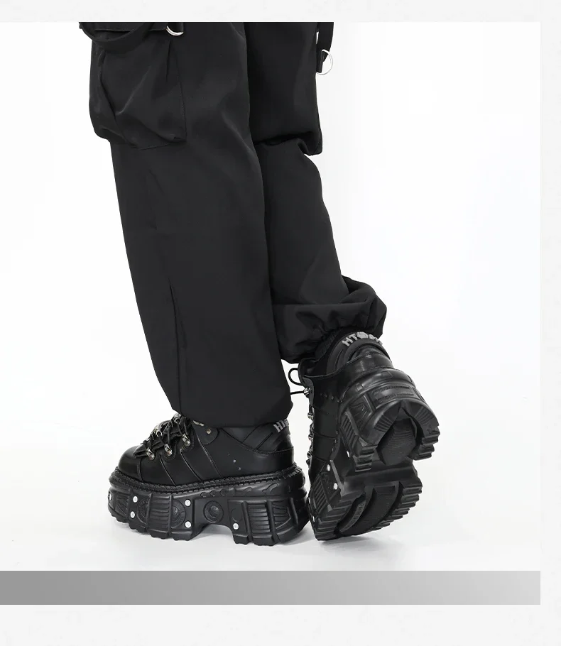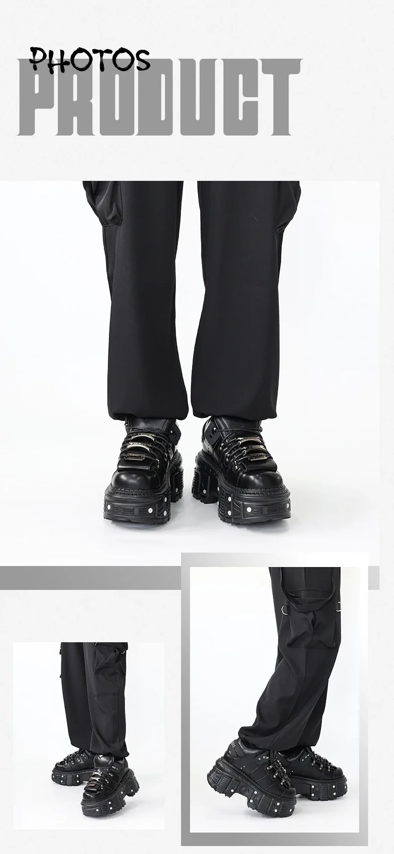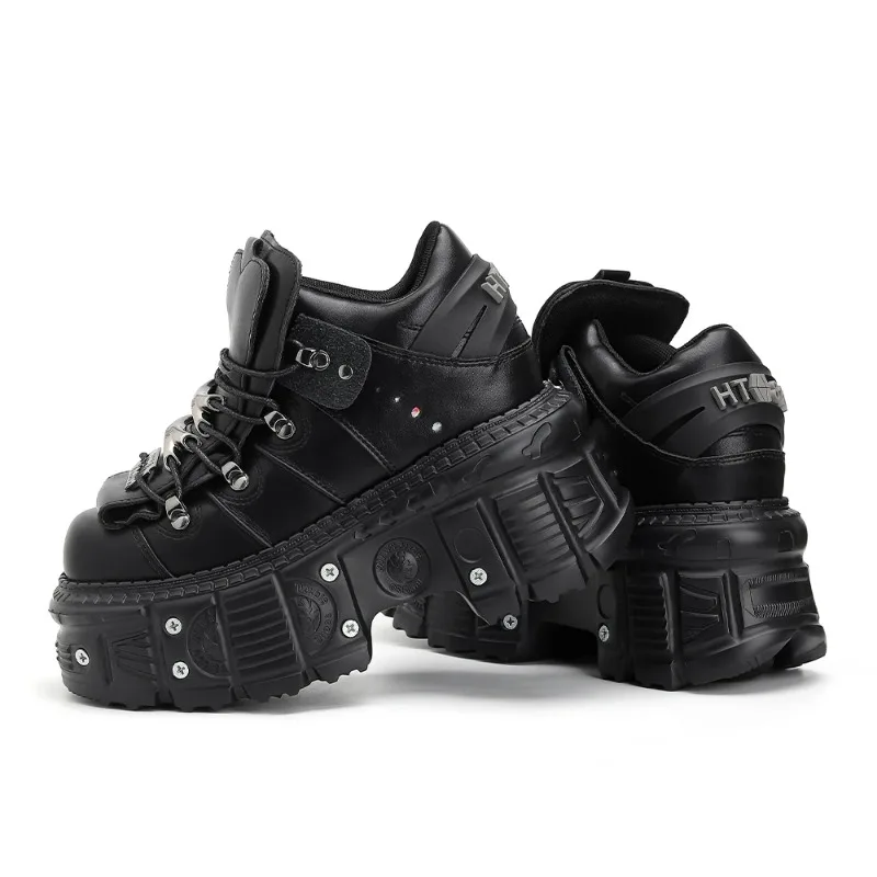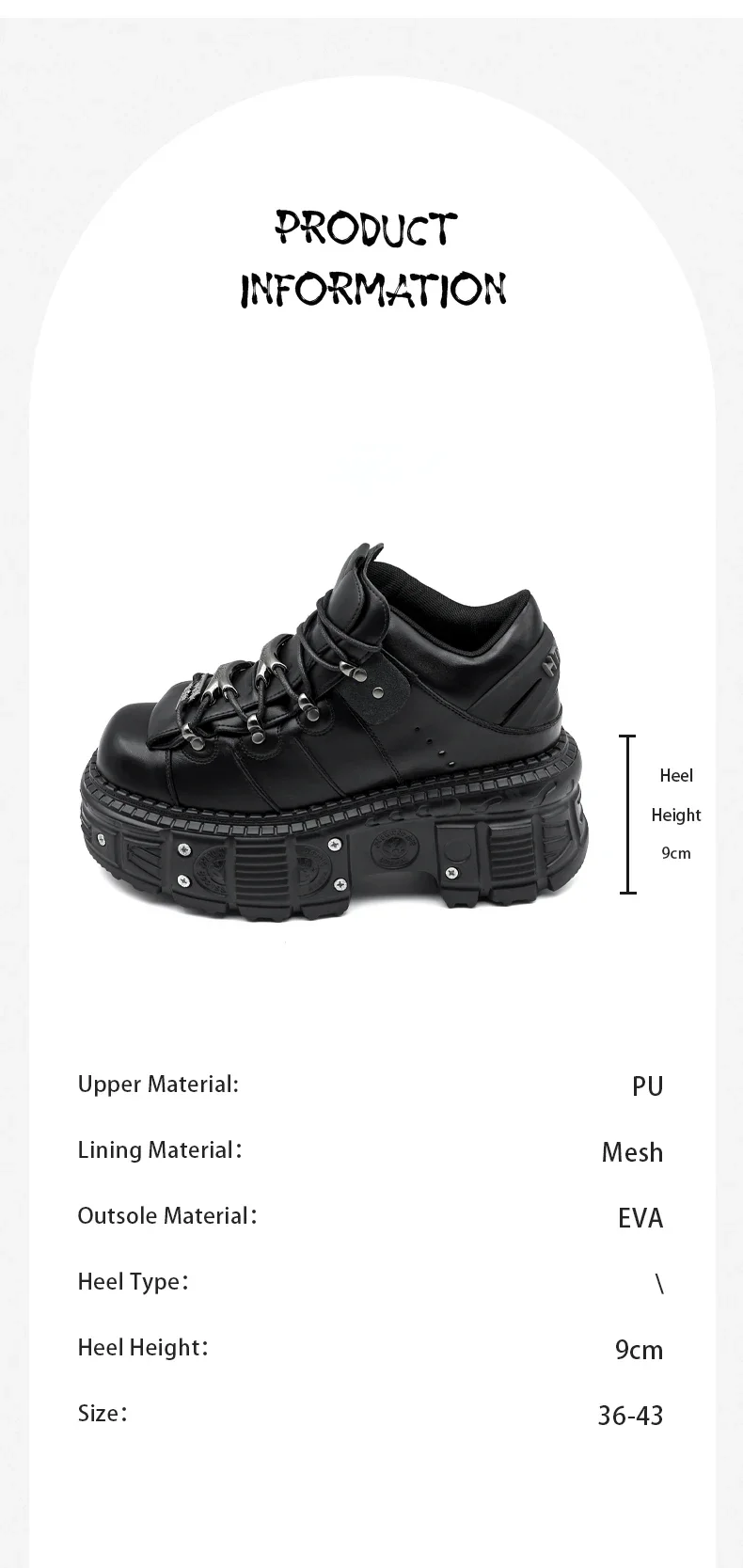 Zapatillas de deporte para mujer, nuevo estilo Punk, zapatos de mujer, botines góticos Rock, zapatos de plataforma con altura de tacón con cordones, decoración de Metal para mujer