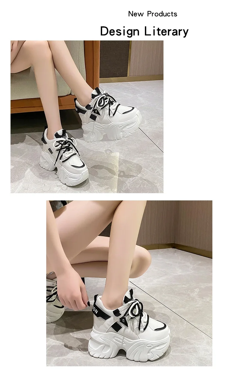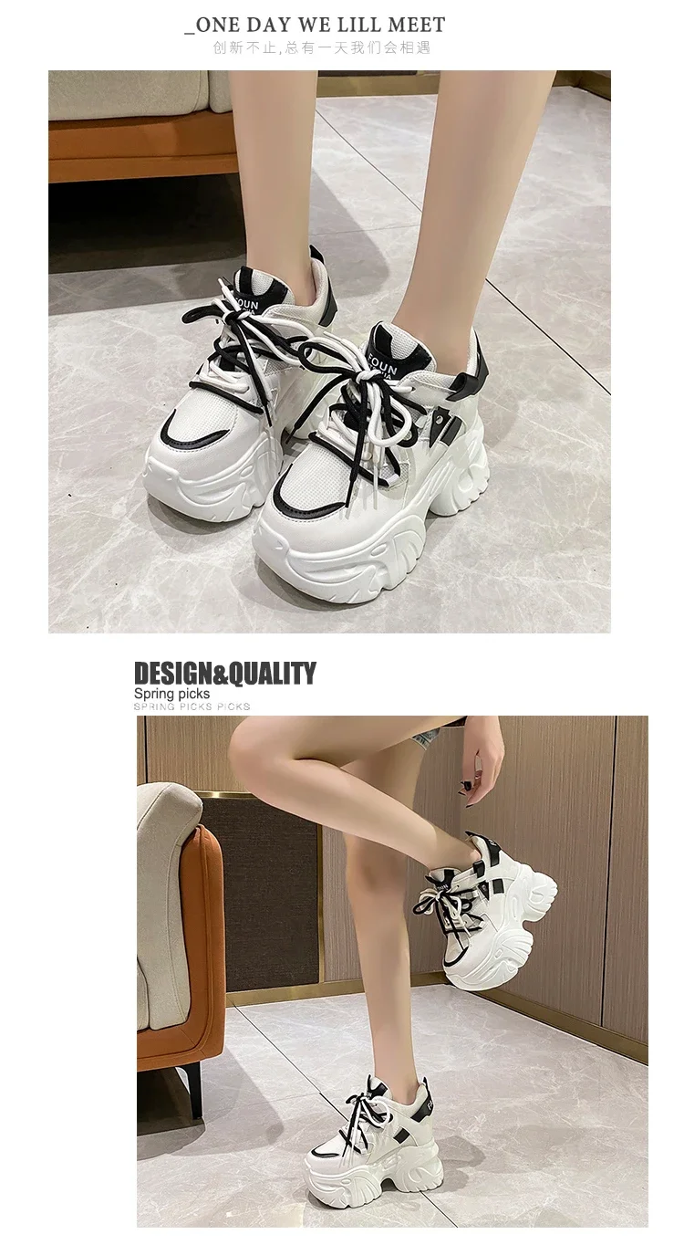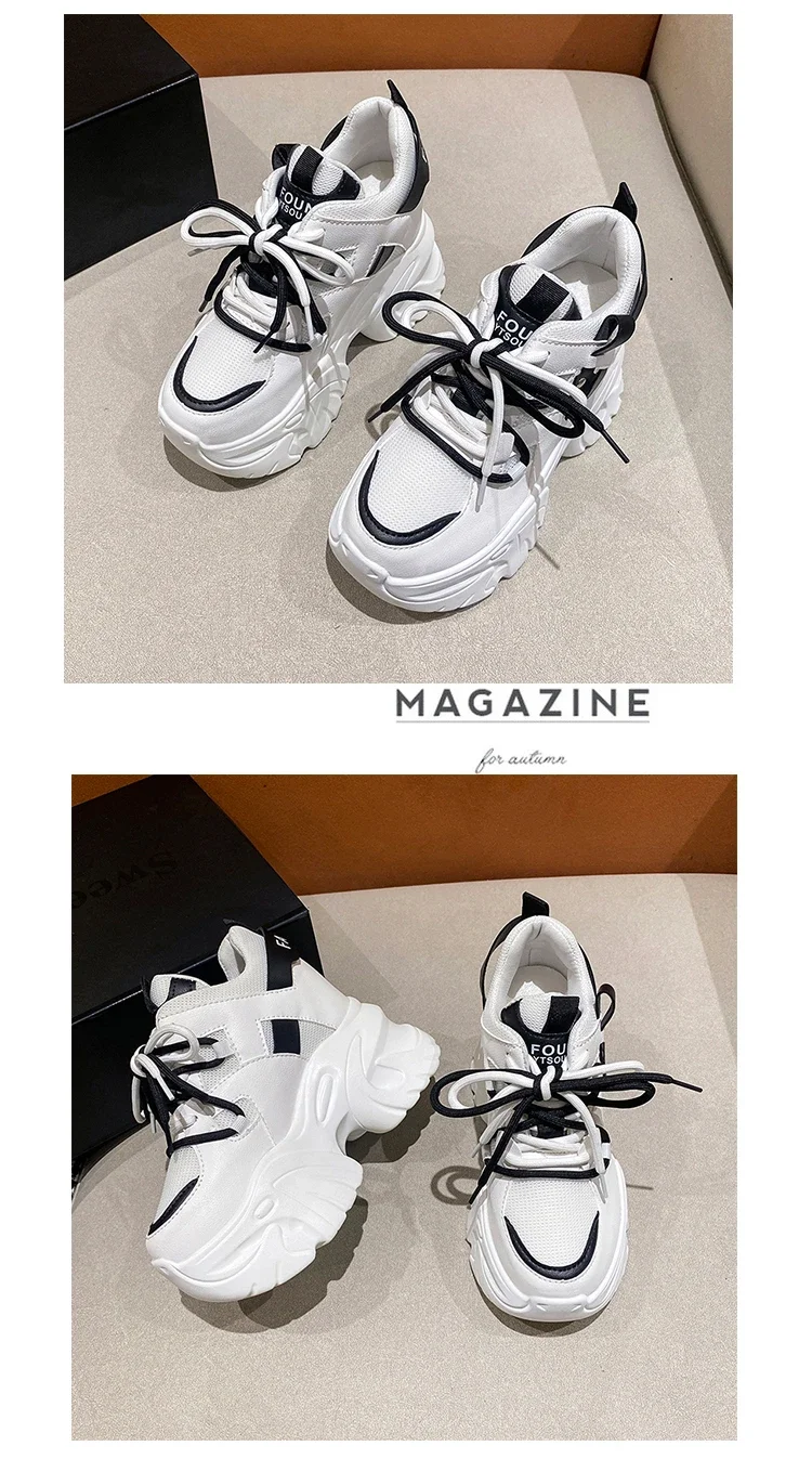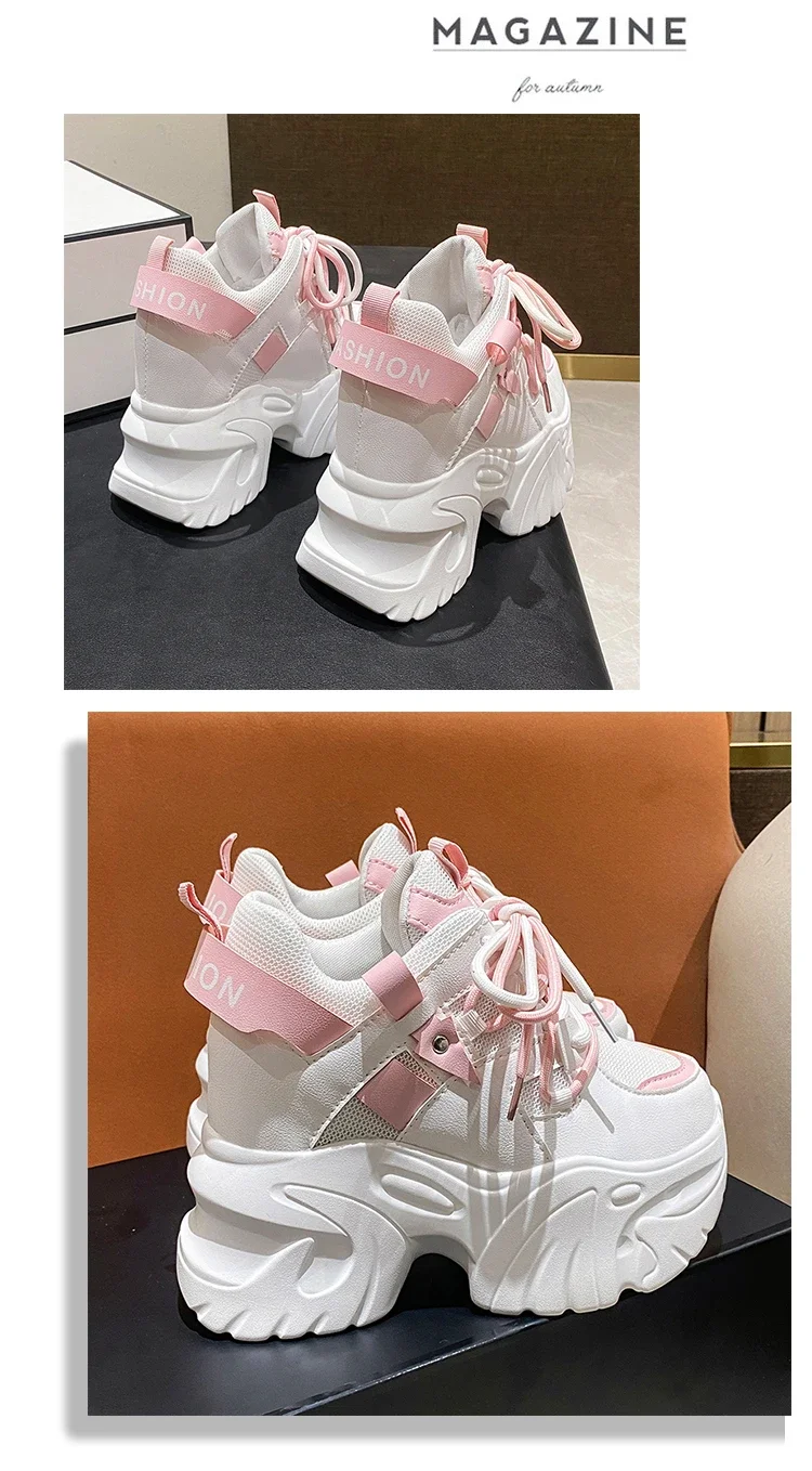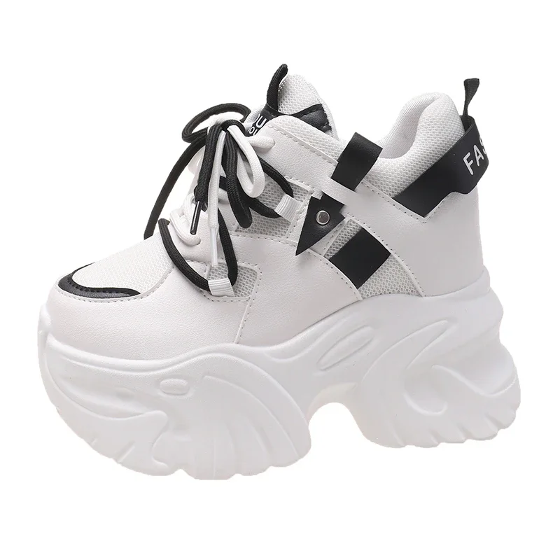 Zapatillas de deporte con plataforma para mujer, zapatos deportivos con cordones de 10,5 CM, informales y gruesos de malla de fondo grueso, color blanco, otoño