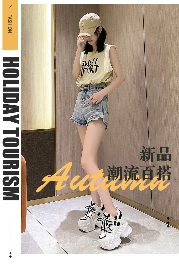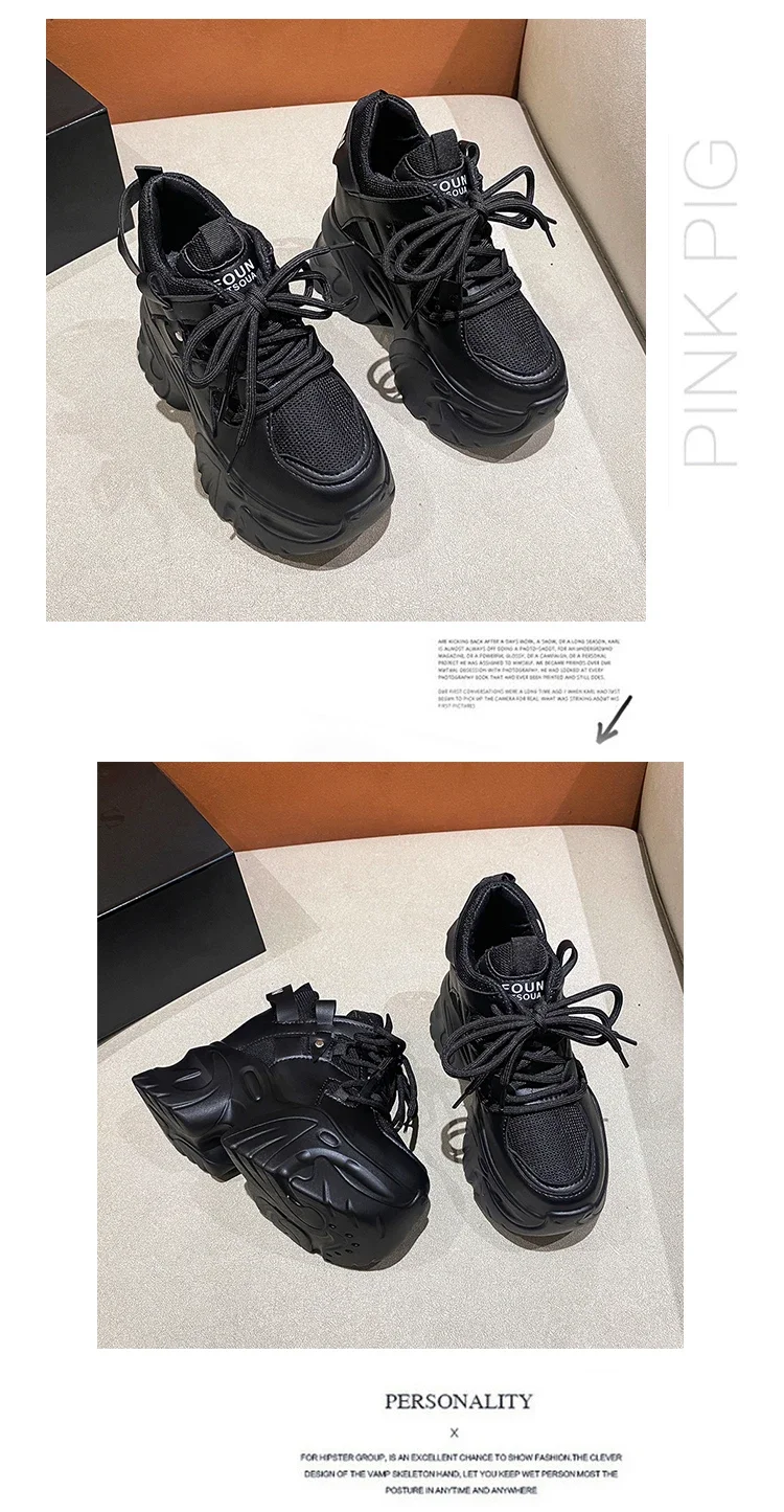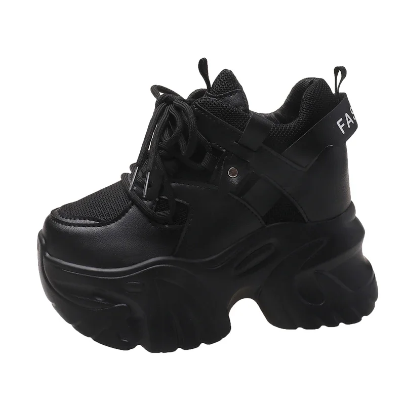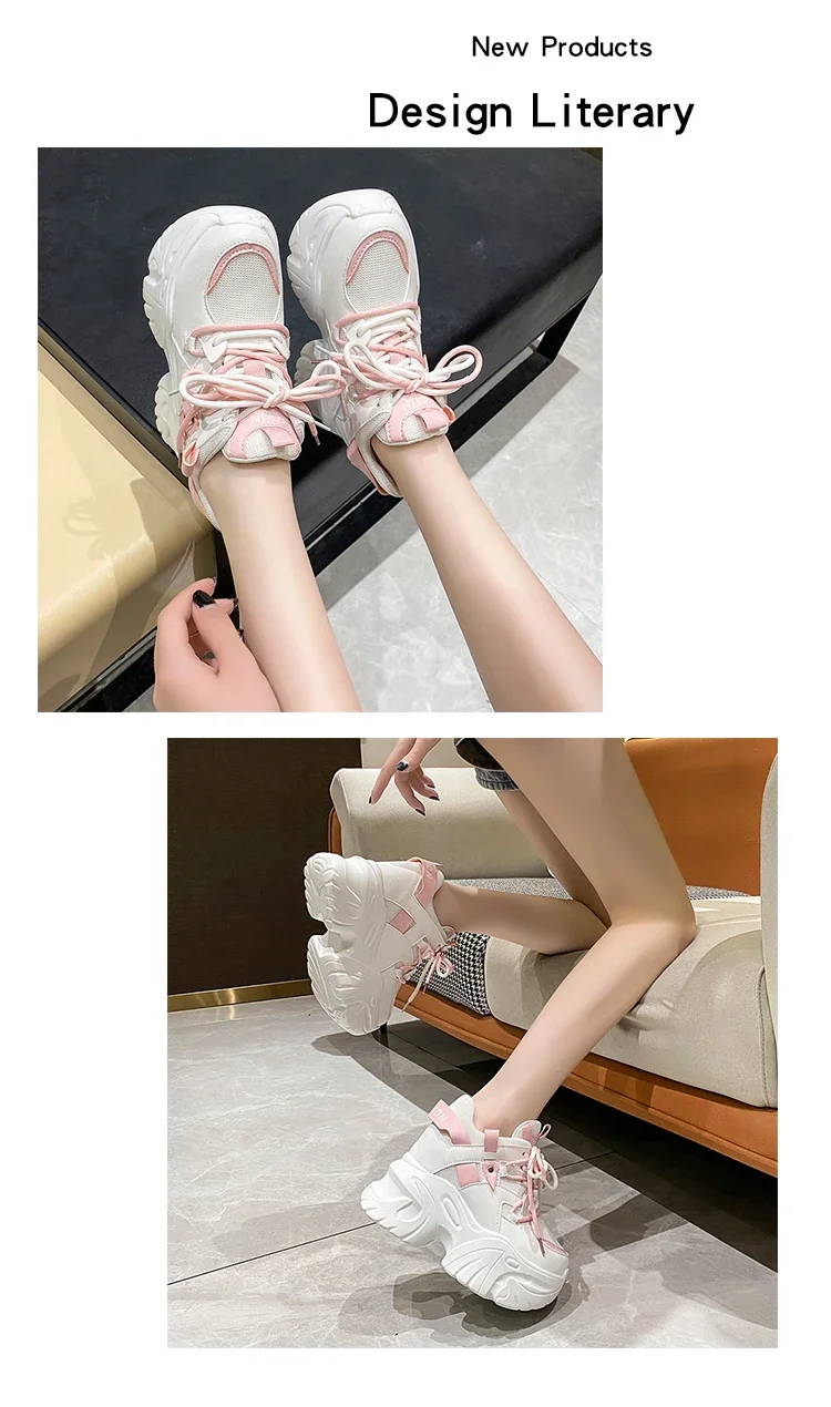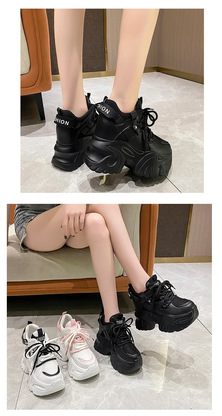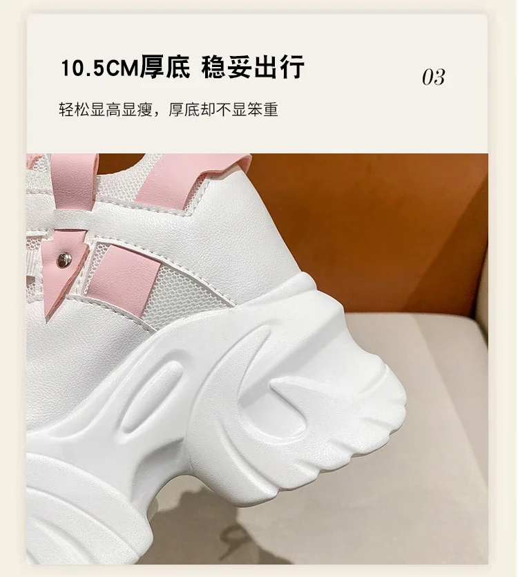 Zapatillas de deporte con plataforma para mujer, zapatos deportivos con cordones de 10,5 CM, informales y gruesos de malla de fondo grueso, color blanco, otoño