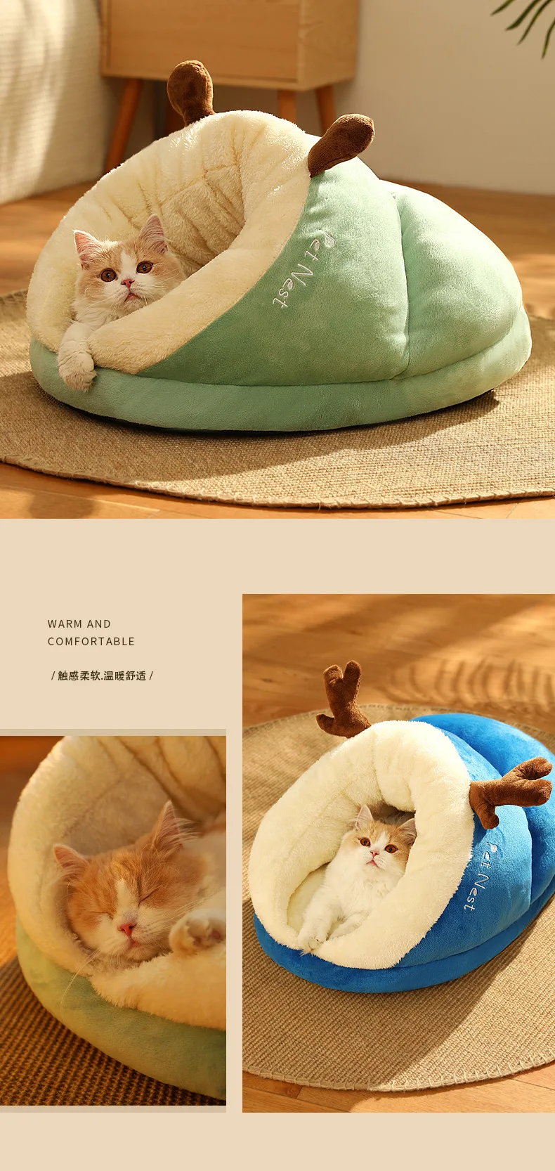 Zapatillas universales Nidos para gatos para todas las estaciones Otoño e Invierno Casa para gatos semicerrada Almohadilla nido en un nido para mascotas Productos para mascotas