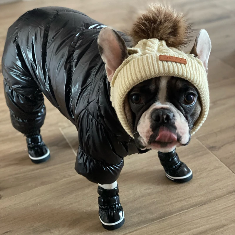 Zapatos cálidos de lana para perros pequeños y medianos, gatos, botas de nieve antideslizantes impermeables para invierno para cachorros, zapatillas de Bulldog Francés para exteriores para mascotas