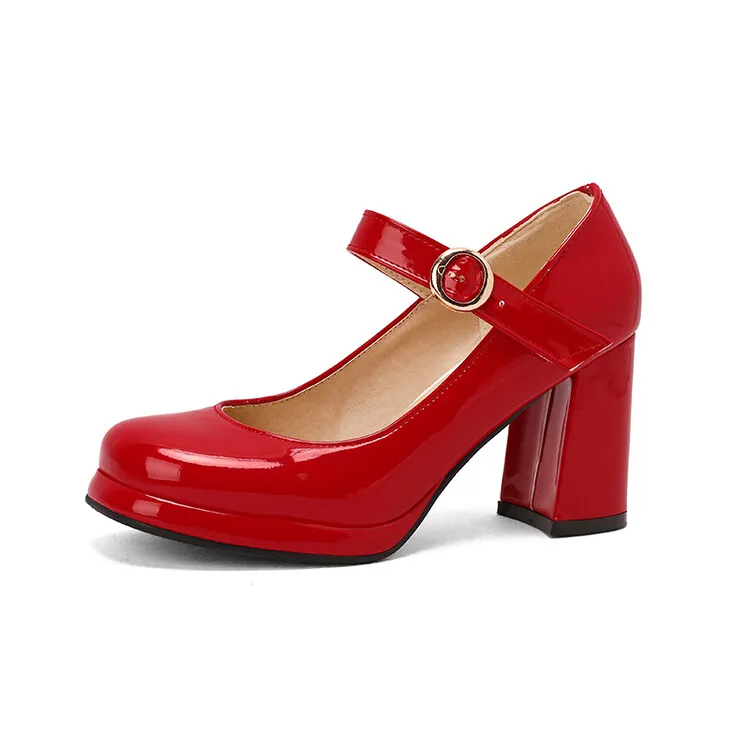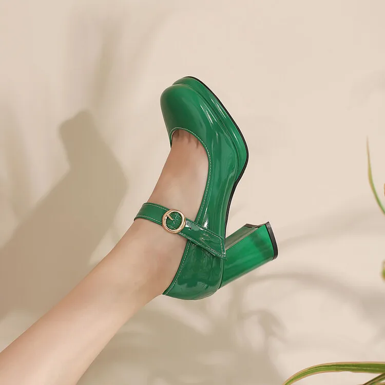 Zapatos de charol de PU para mujer, calzado de punta cerrada, con hebilla y Correa, color verde, azul marino, Estilo Vintage, Mary Janes