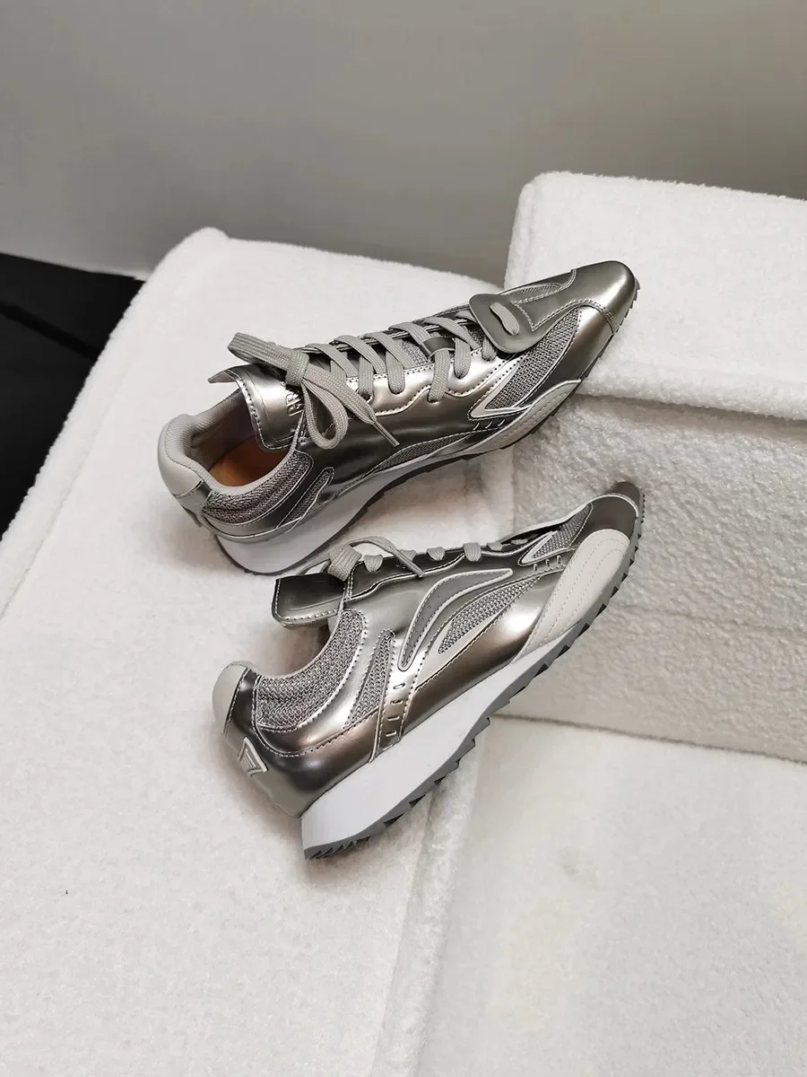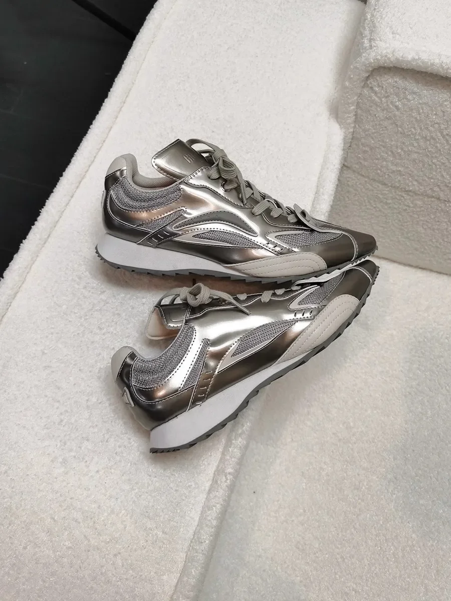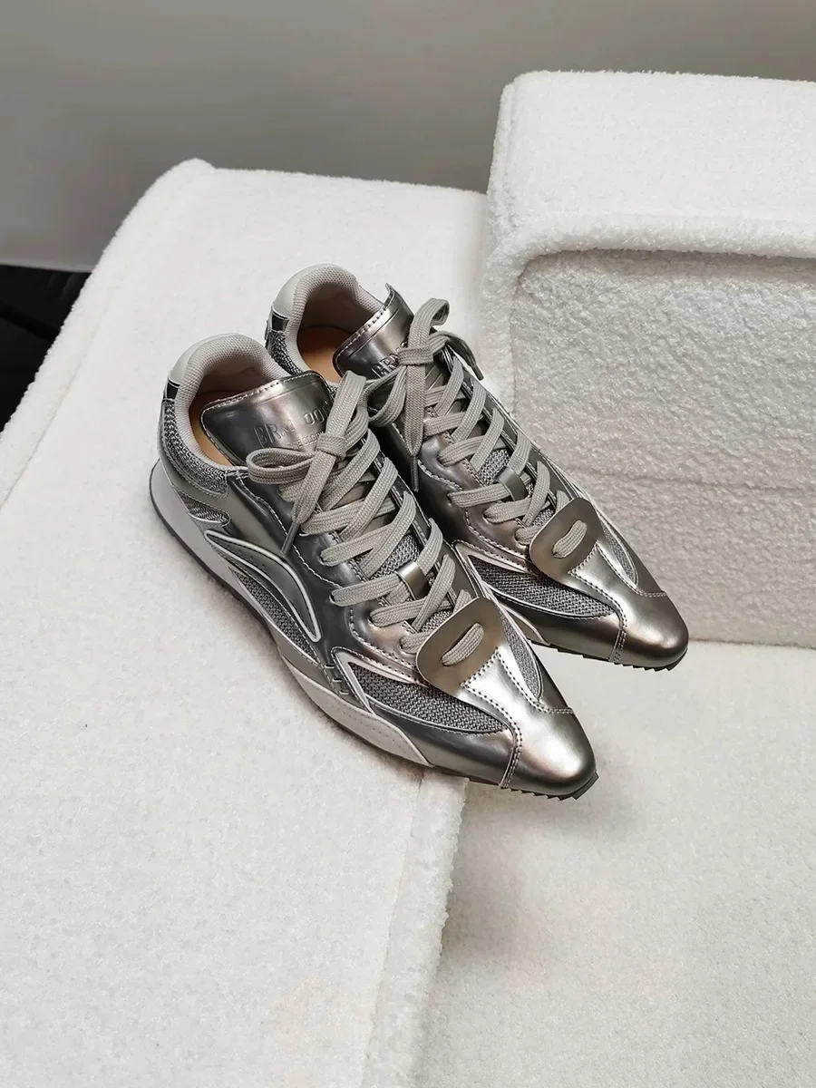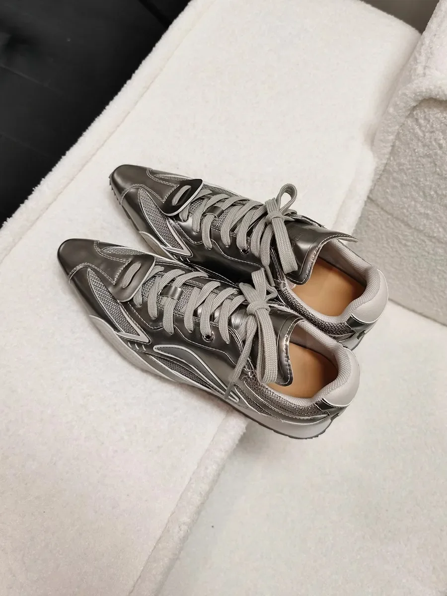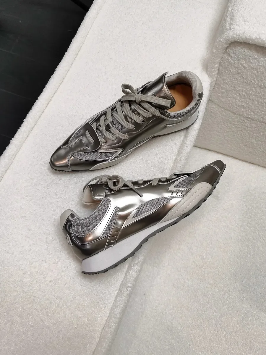 Zapatos deportivos de punta estrecha a la moda, aumento de hilo dorado y plateado, nuevo diseño de público pequeño para mujeres adultas, zapatos informales de verano