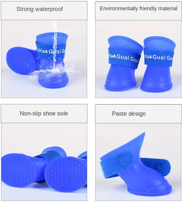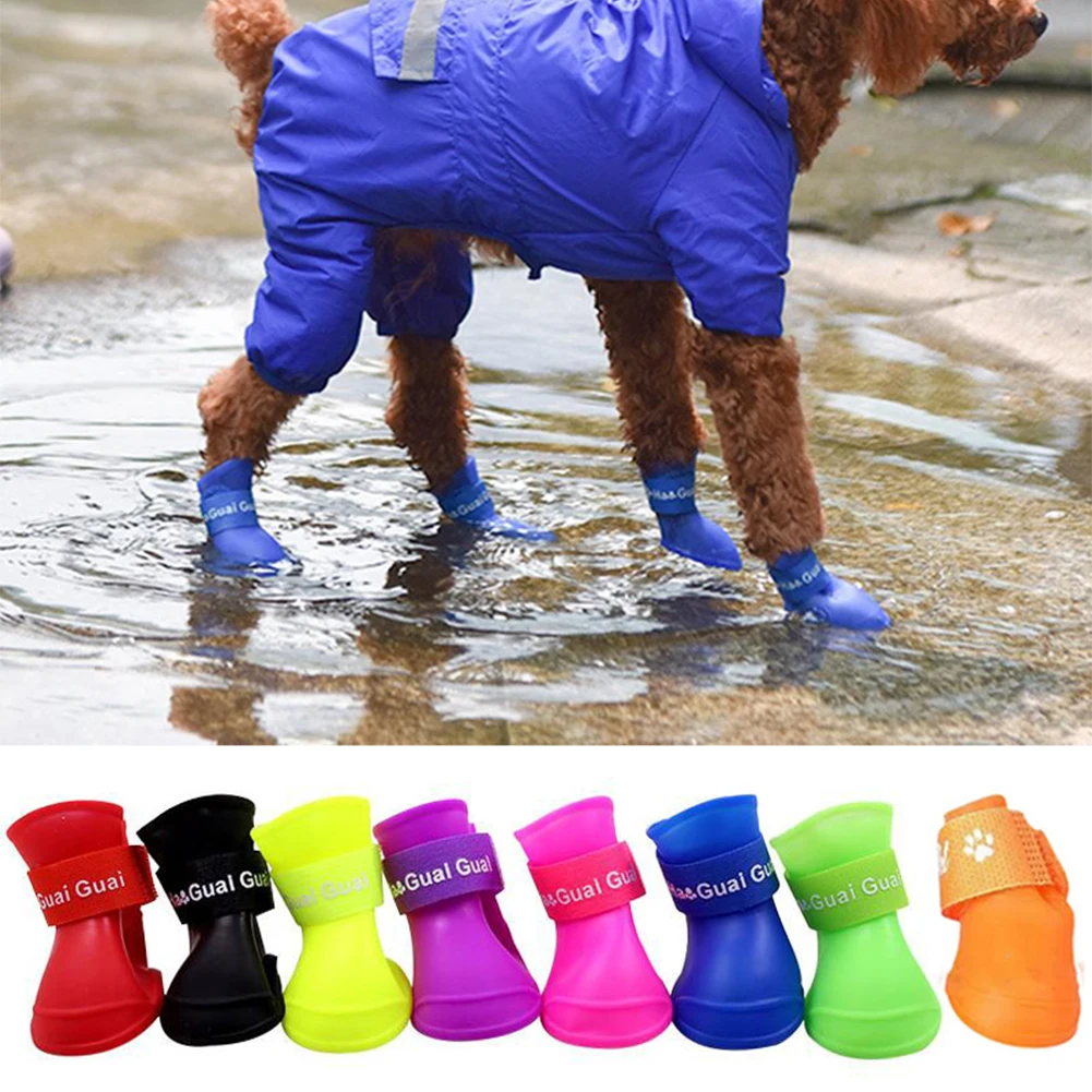 강아지 신발 소프트 실리콘 애견 레인 슈즈 소형견 중형견 고양이 방수 레인 부츠 고무 장화 튼튼한 신발 강아지 용품
