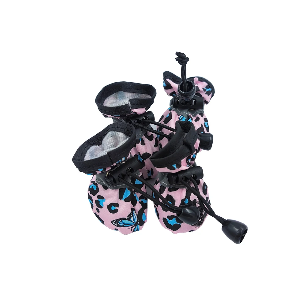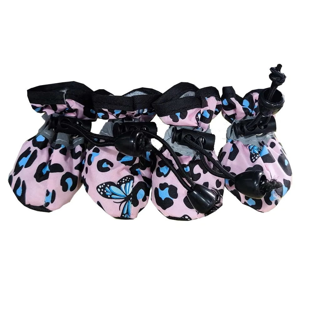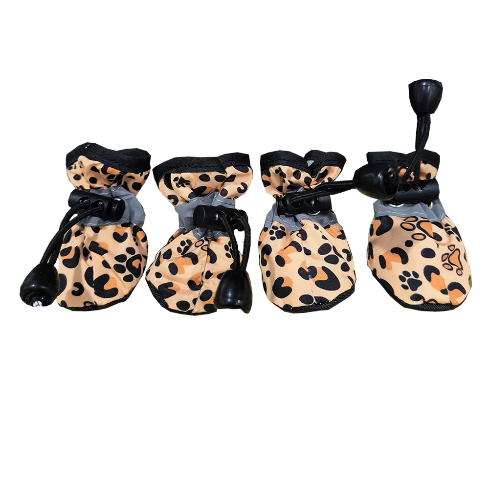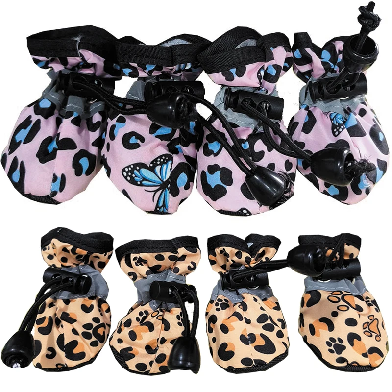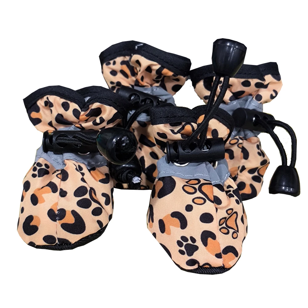 Zapatos Impermeables para Perros Pequeños, Botas Reflectantes Antideslizantes para Cachorros, con Estampado de Leopardo, Ajustable, Bulldog Francés, Pug, Calzado para Mascotas