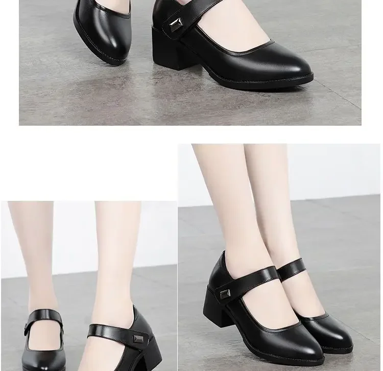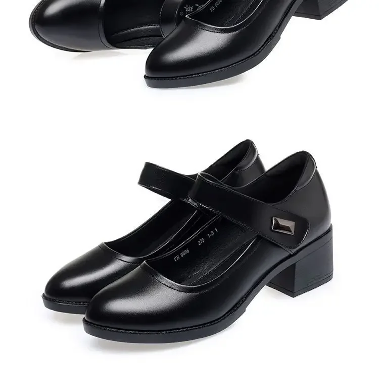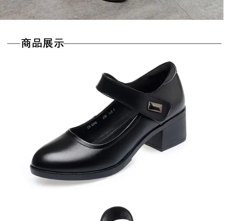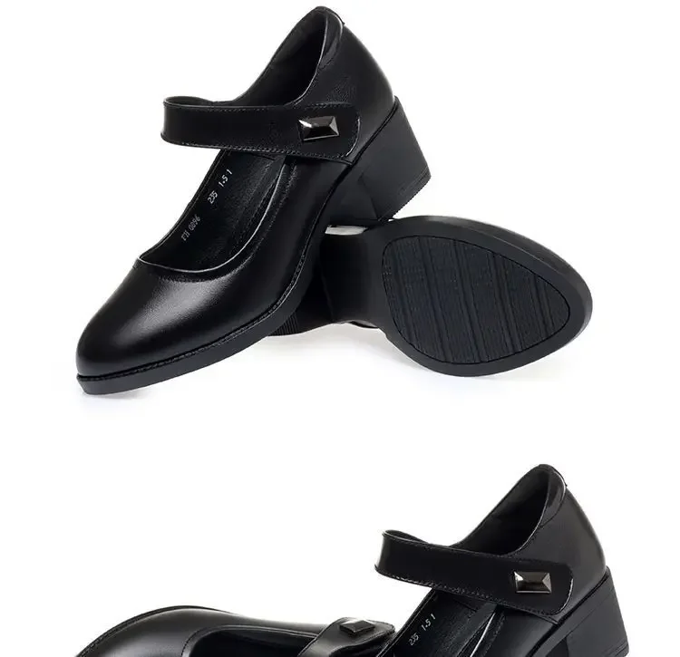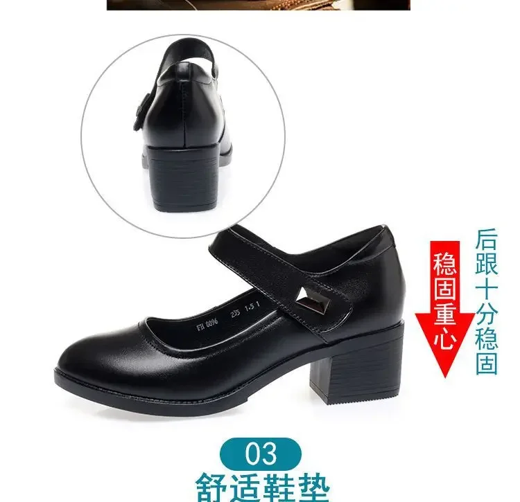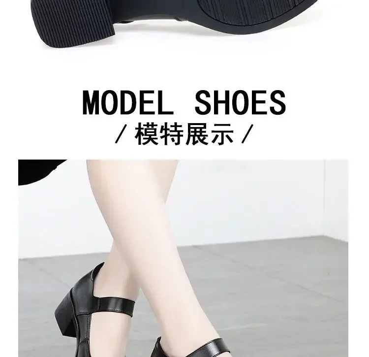 Zapatos individuales para mujer, zapatos de tacón transpirables de verano 2025, zapatos de trabajo de fondo suave con tacón grueso, zapatos de tacón negros cómodos e informales