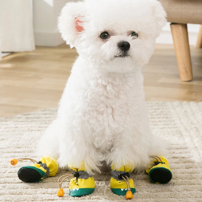Zapatos de lluvia de silicona para mascotas, botines de goma antideslizantes portátiles, impermeables, para exteriores, bonitos zapatos de cocodrilo, suministros para mascotas, 4 unidades por juego