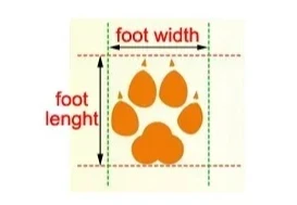🐾 Mide las cuatro patas– Las patas delanteras suelen ser más grandes que las patas traseras.Cada pata debe medirse individualmente.