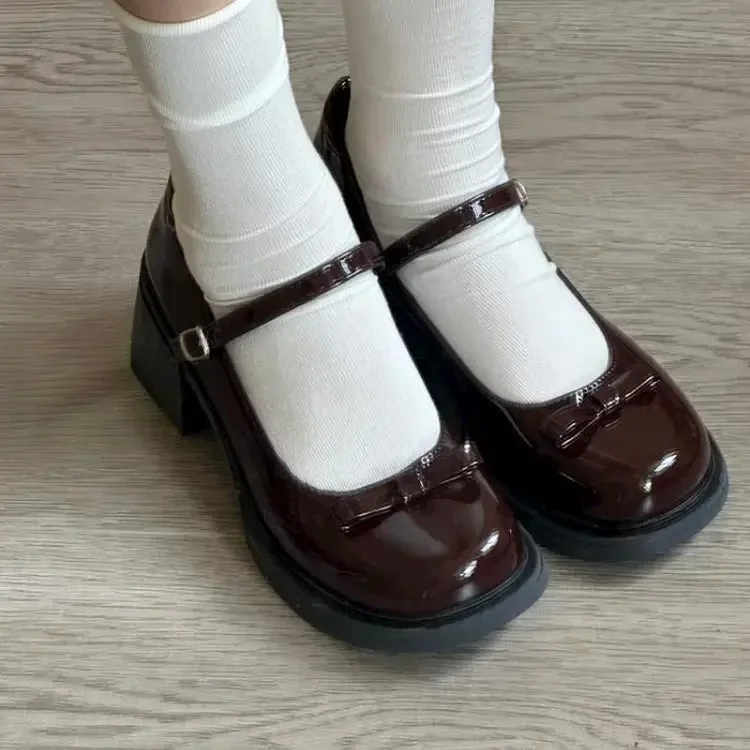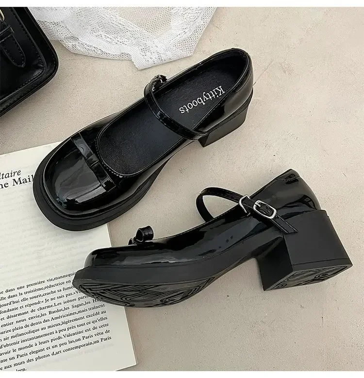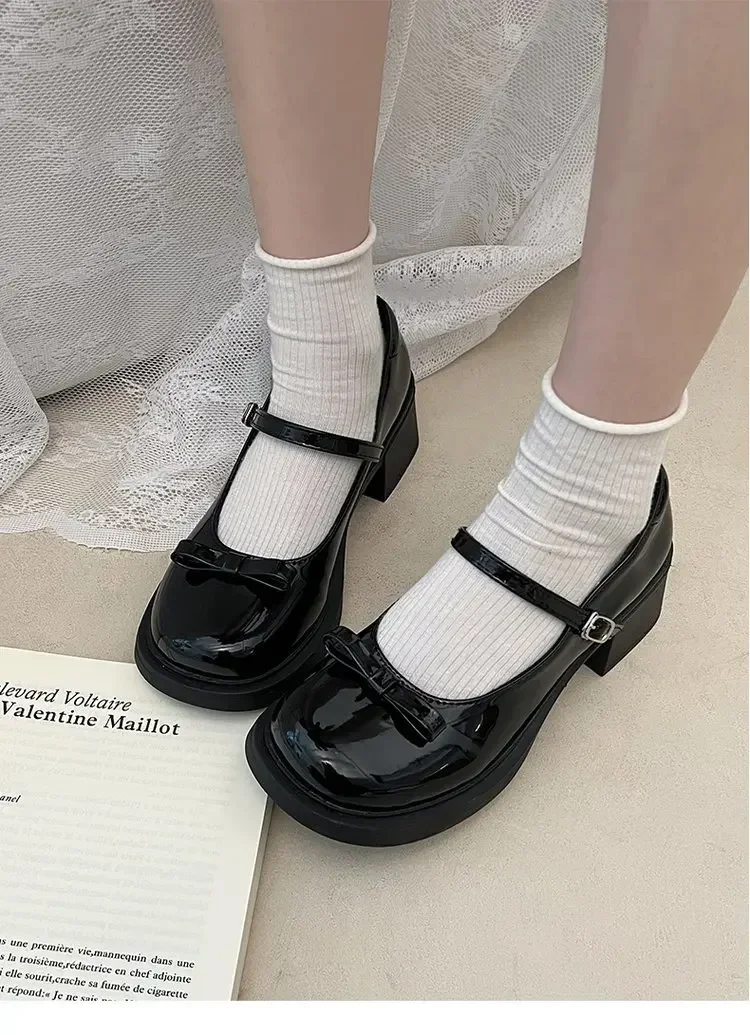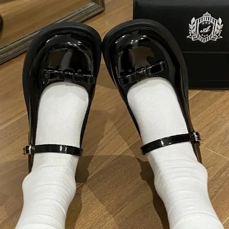 Zapatos Mary Jane de fondo grueso de estilo británico, mocasines JK de estilo japonés con cabeza redonda y plana Vintage francesa, suela de goma para adultos