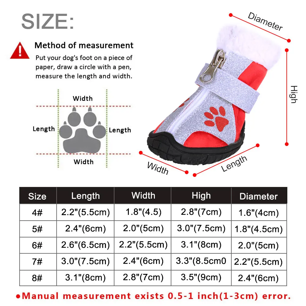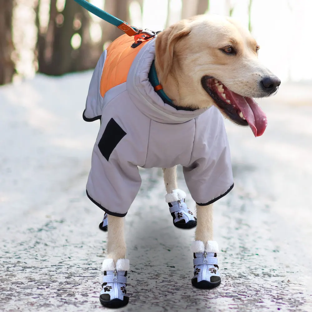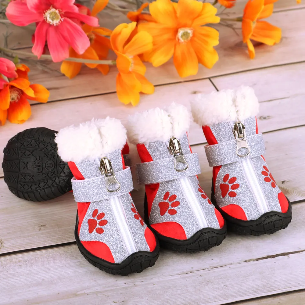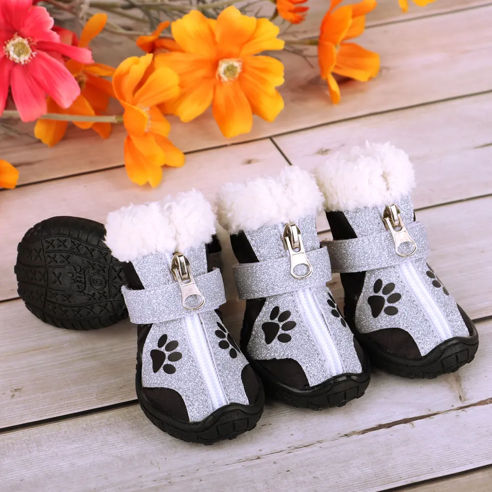 Nombre: 4 unids/set de zapatos para perros y mascotas, botas cálidas de invierno para perros, nieve, lluvia, mascotas, botines, Calcetines antideslizantes, calzado para perros medianos y grandes, productos para mascotas