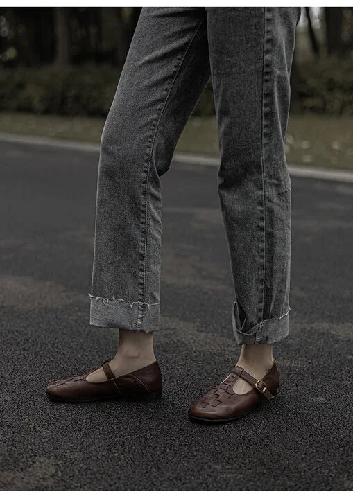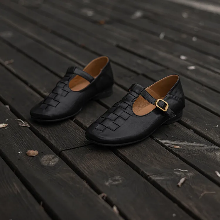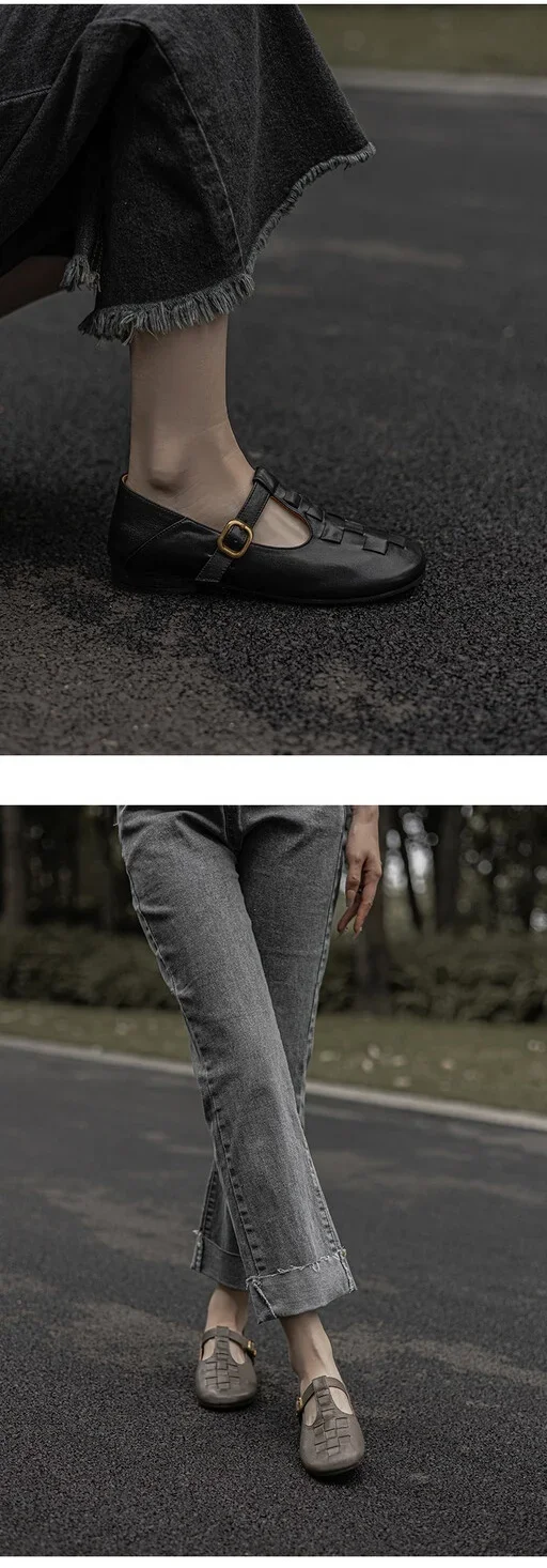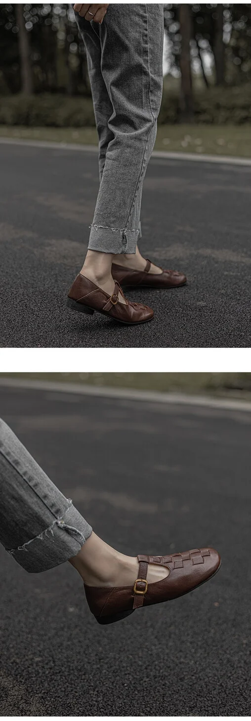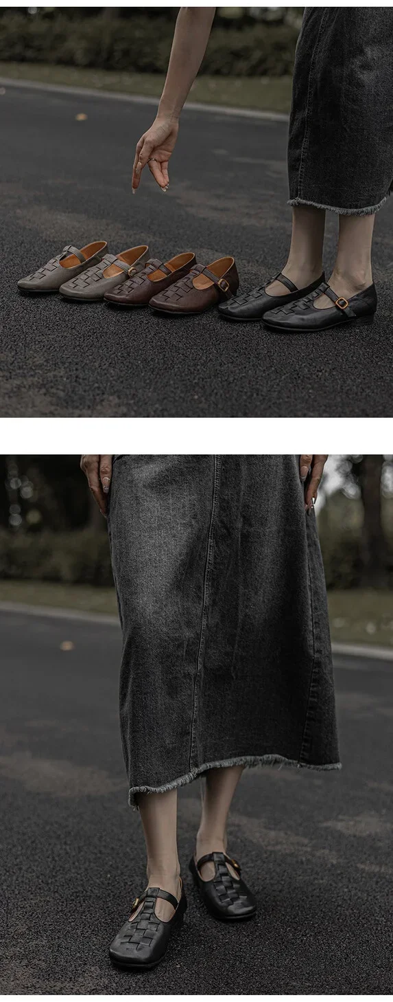Zapatos de mujer Mary Jane 2025, primavera, nueva moda, mocasines planos informales, correa de cuero Retro con hebilla, zapatos de mujer de estilo Simple, cómodos planos
