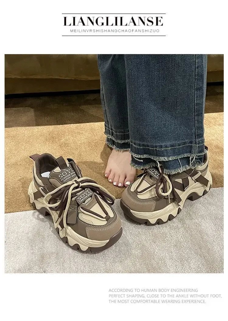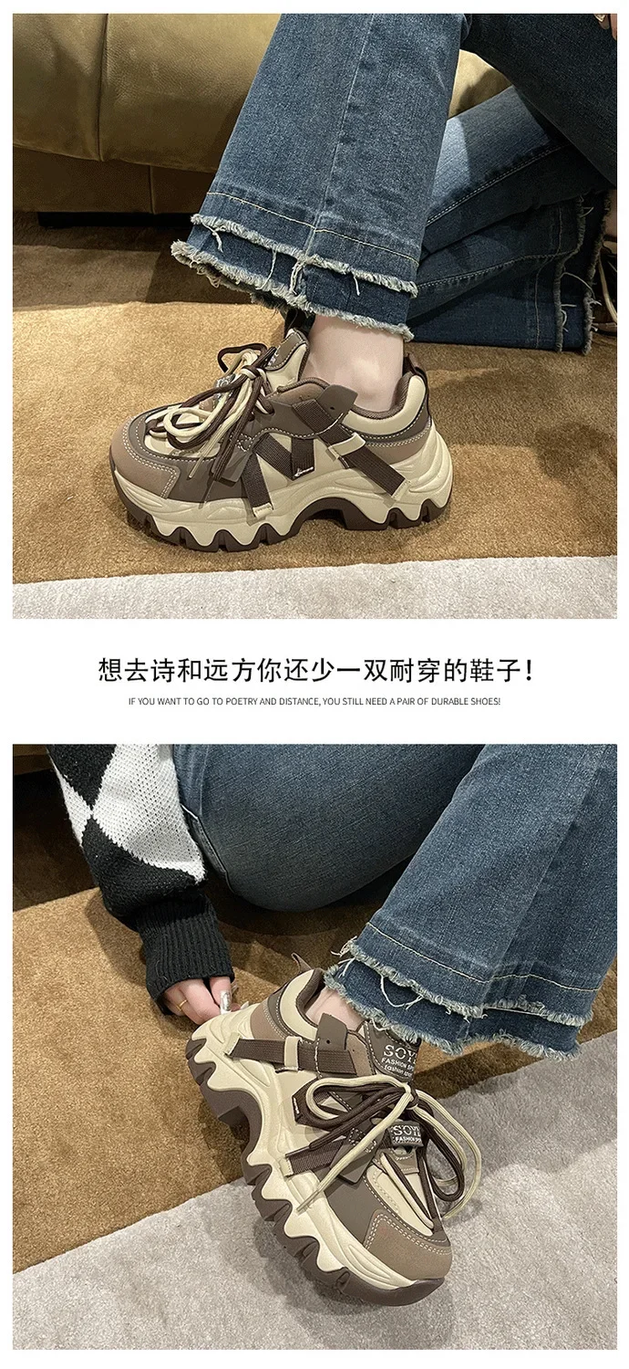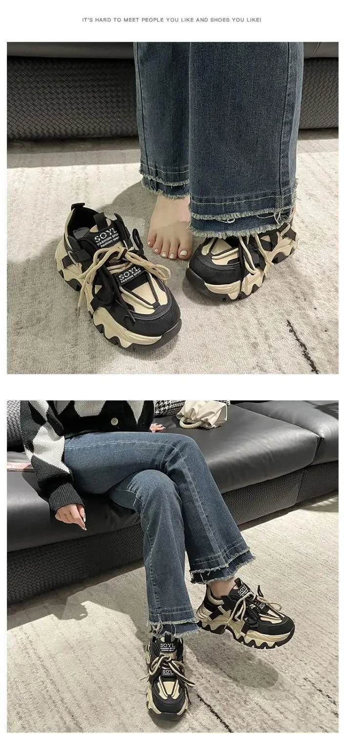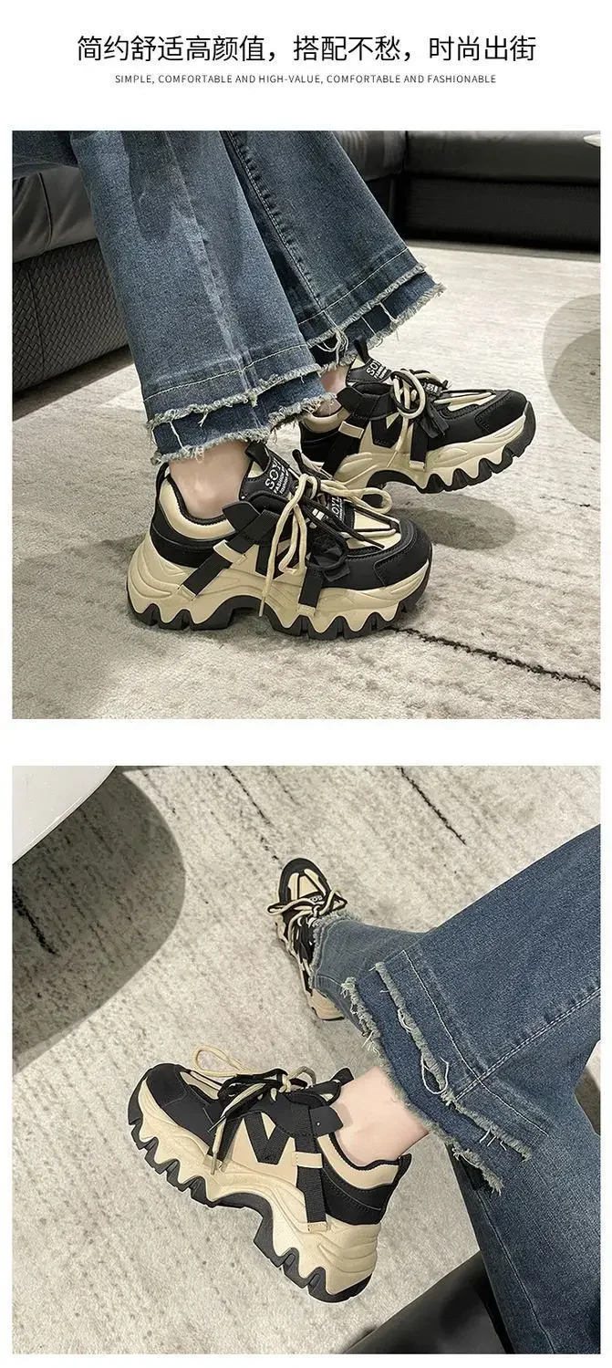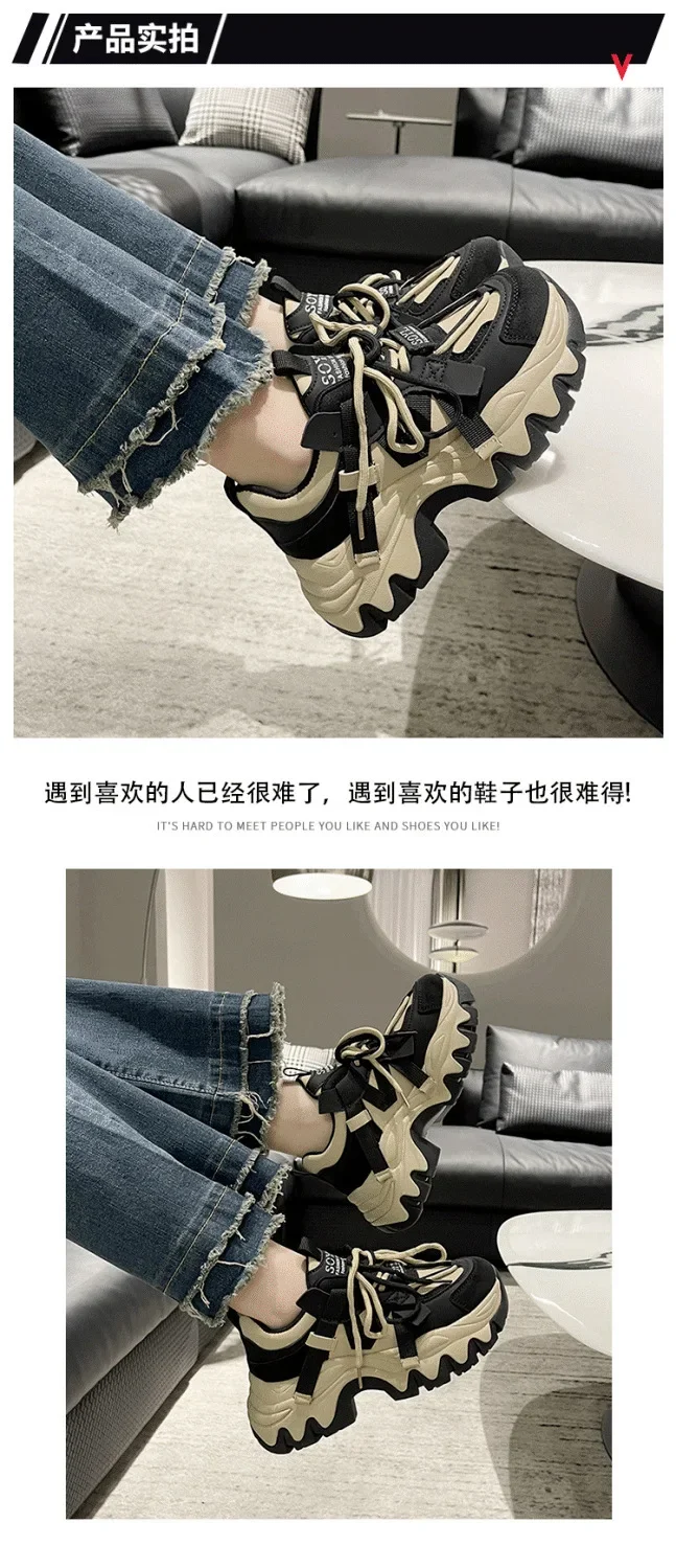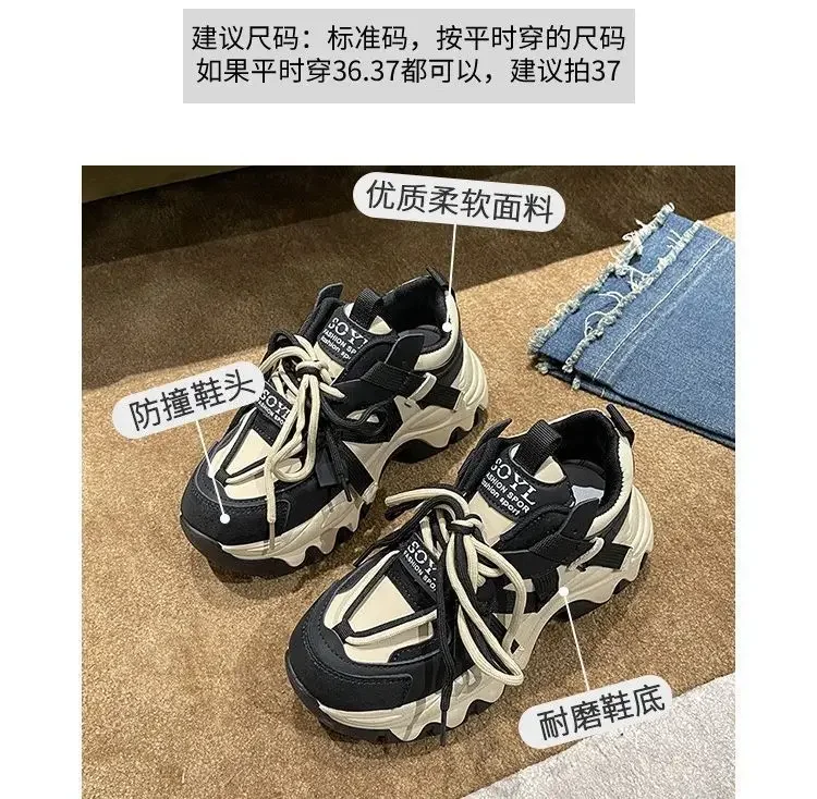 Zapatos de mujer, zapatillas de deporte, zapatos de plataforma, zapatillas de deporte para mujer, zapatos de diseñador, suela gruesa, explosivo, calle, papá, zapato para niña