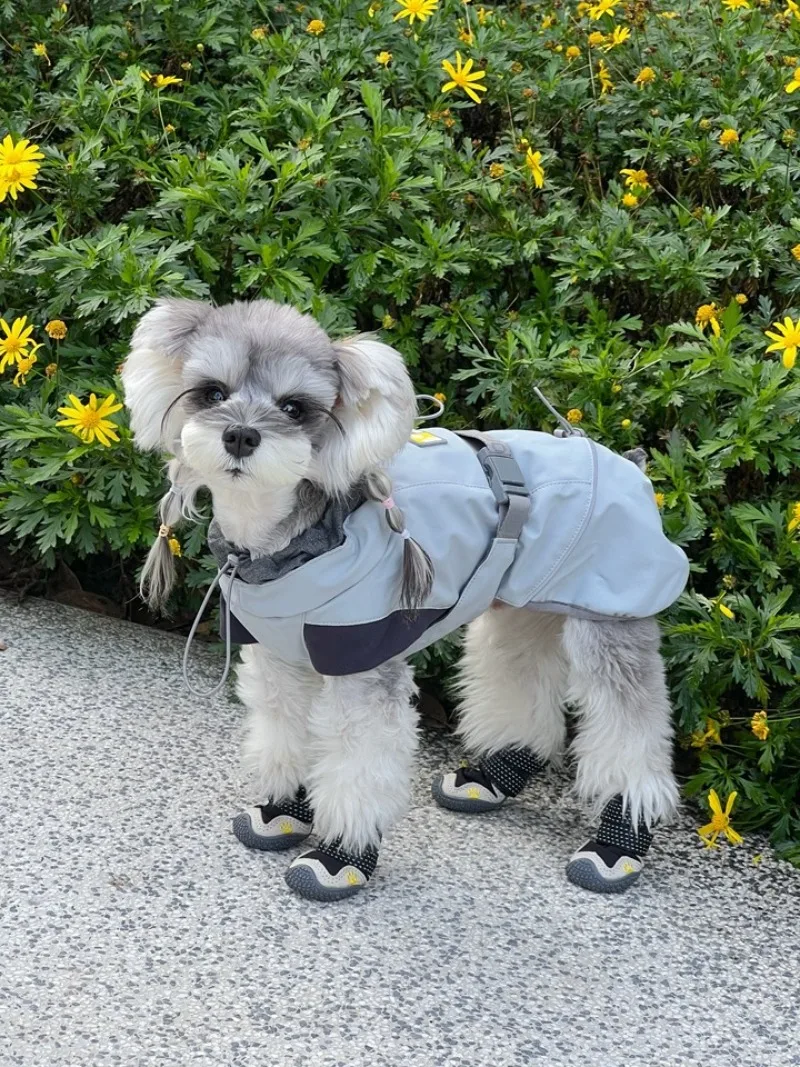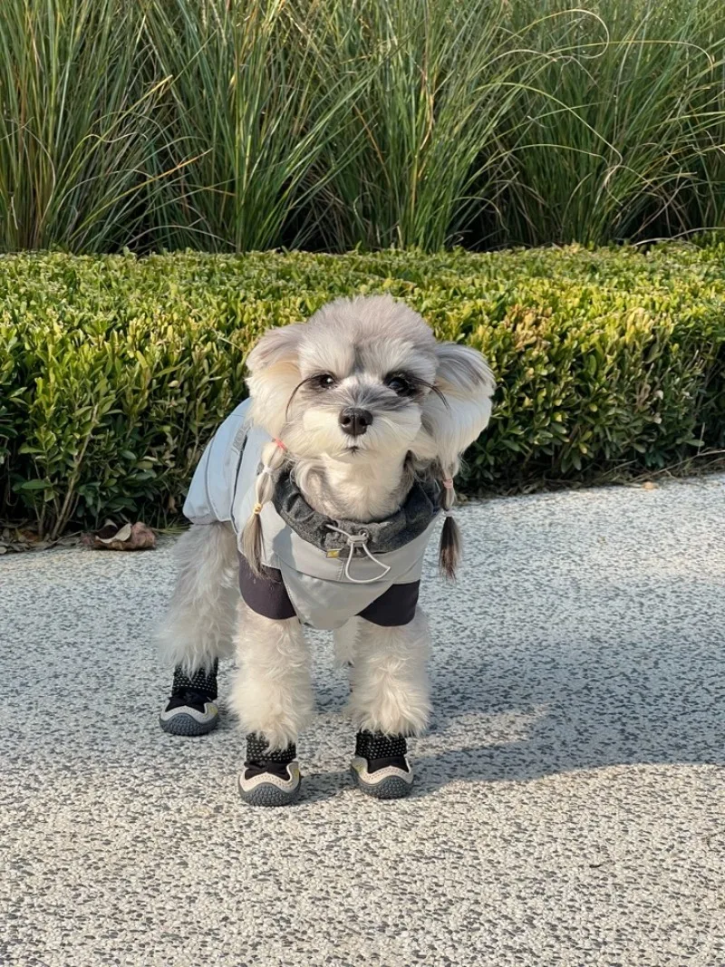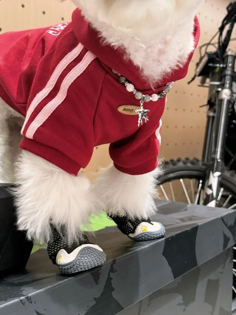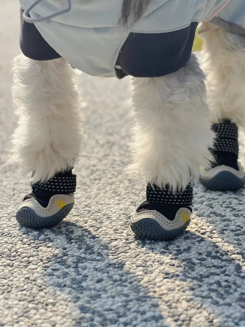 Manual measurement of shoe inner width0.3CMInside is normal. Tip: lf your dog's feet are between sizes, please choose the larger size.( Measure all 4 paws. Please use the longest & widest measurement. ) Sizesize 1size 2size 3size 4size 5size 6size 7size 8 Inner width( CM)44.555.566.577.5 About this item 【CHOOSE THE RIGHT SIZE】A total of 4 sizes are available. Great for medium and large dog. Please measure your dog's paws carefully before purchasing and refer to the size chart. For the best fit, your puppy must be measured while standing. And use a ruler to measure the widest part of the paw. 【NON-SLIP SOLE & STYLISH DESIGN】The tough non-slip sole provides better traction and flexibility, helps dogs with mobility and stability on tile and the sand. While the stylish dog paw embroidery adds a fashionable touch, making your pet stand out on the streets. 【SECURE & ADJUSTABLE】The expandable wide slit opening of these dog shoes makes it easy to put on the dog shoes and ensures a secure fit with adjustable laces to keep the dog booties snugly in place. Additionally, the glow-in-the-dark laces enhance visibility during nighttime walks, adding an extra layer of safety. 【BREATHABLE MESH】Made with tightly woven air mesh that keeps dirt and debris out while staying comfortable and ventilated all day long. The waterproof and dustproof features make these shoes suitable for various weather conditions and terrains. They are the ideal companions for you and your dog to explore the world together. 【EFFECTIVE PAW PROTECTION】Specifically designed to protect your dog's paws, dog shoes for large dogs feature an additional protective layer that shields against sharp objects, heat, cold surfaces, and other elements that could harm paw pads. These dog boots are ideal for backpacking, trail running, and any other outdoor adventures, allowing them to run freely outdoors without worry.
