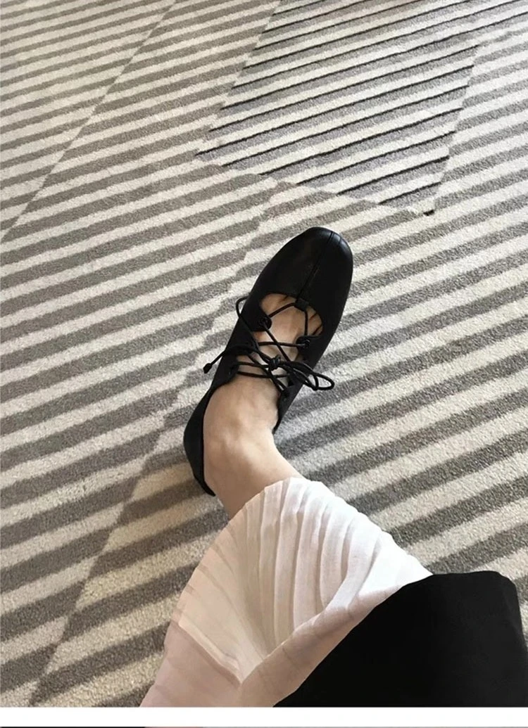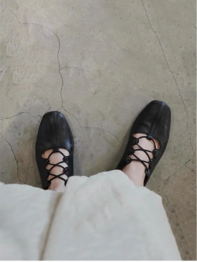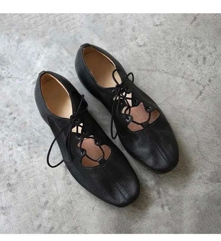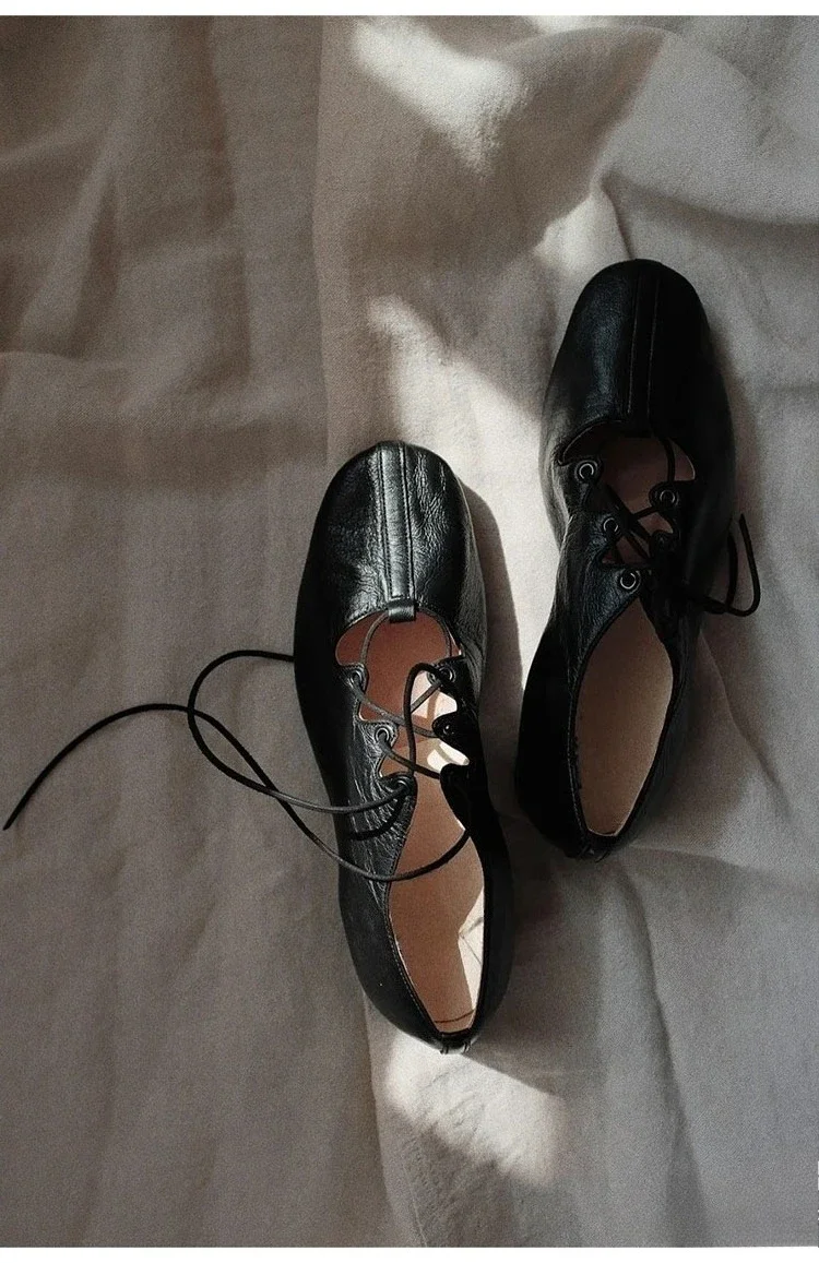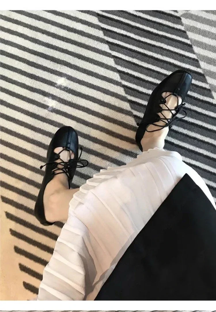 Zapatos planos bajos de Ballet, zapatos informales suaves para ir al trabajo, zapatos planos Retro con cordones cruzados para primavera y otoño 2025, Mary Jane