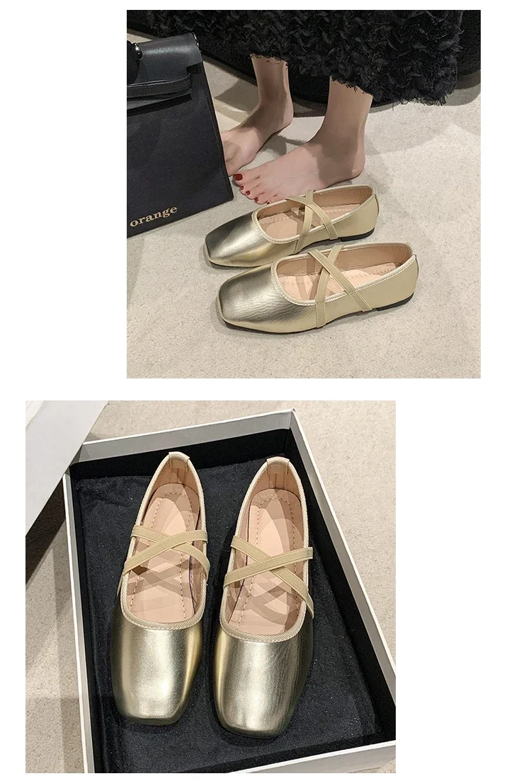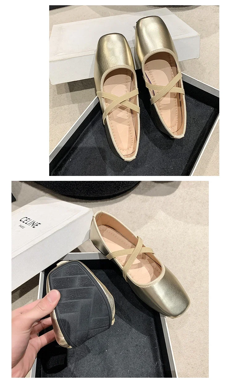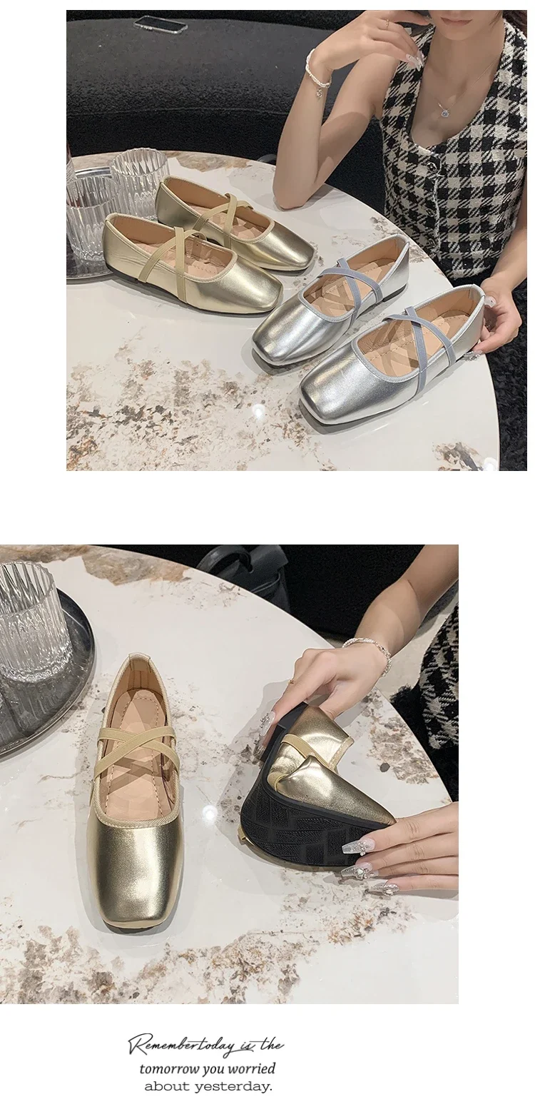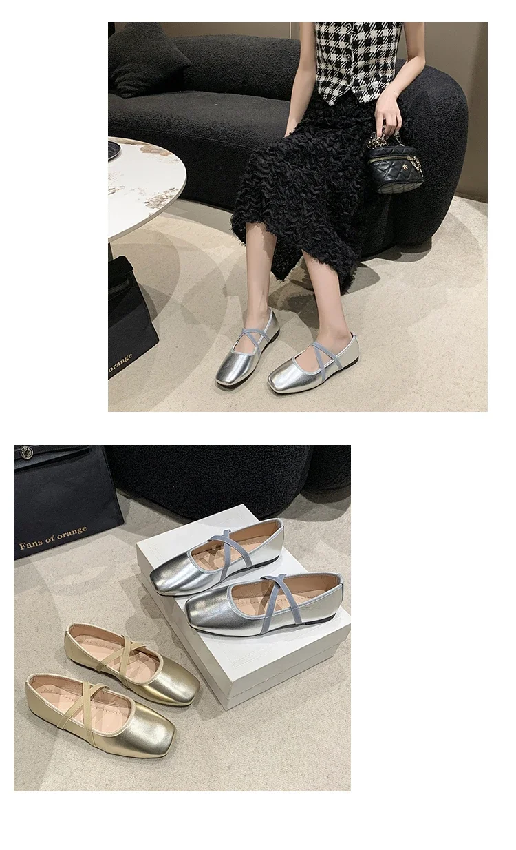 Zapatos planos con pajarita plateada brillante para mujer, mocasines de cuero a cuadros con punta redonda y retales, zapatos planos para mujer