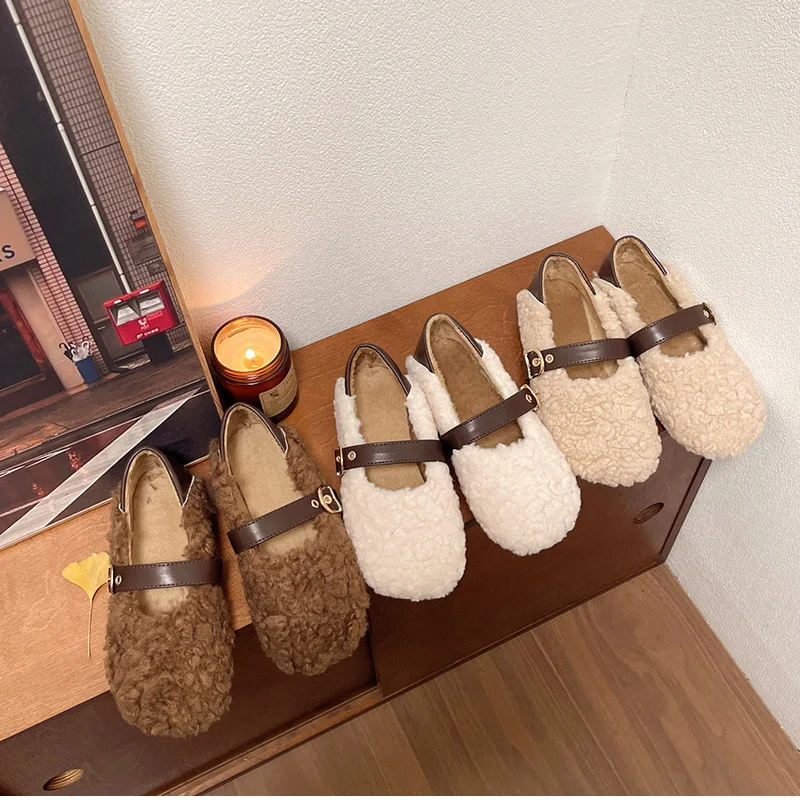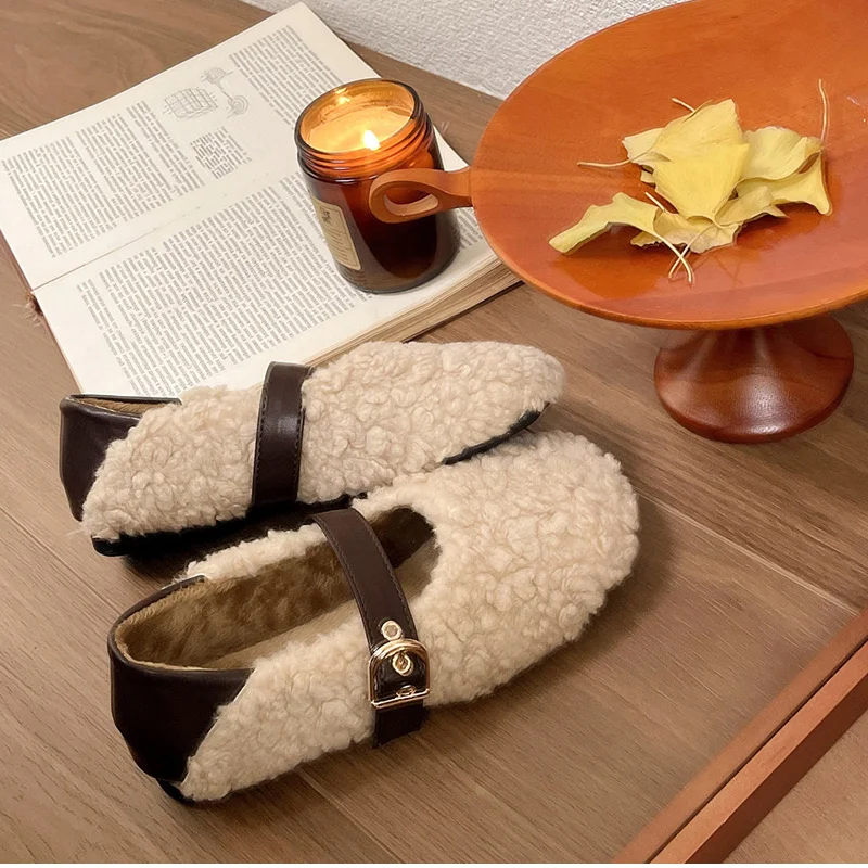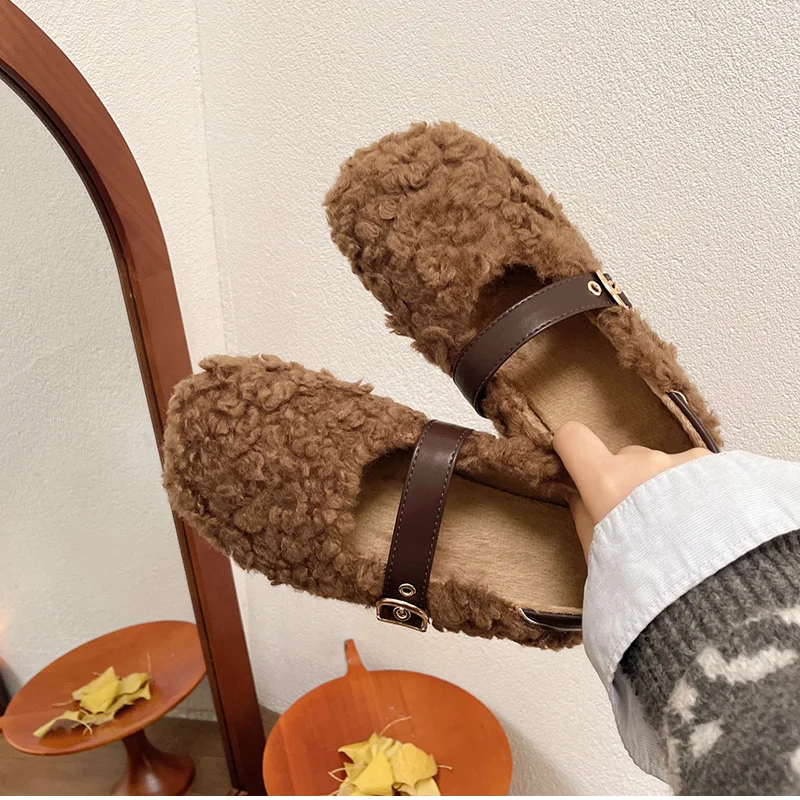 Zapatos planos de piel Vintage de diseñador para mujer, zapatos con hebilla de cinturón poco profundos a la moda, zapatos elegantes para mantener el calor para primavera y otoño