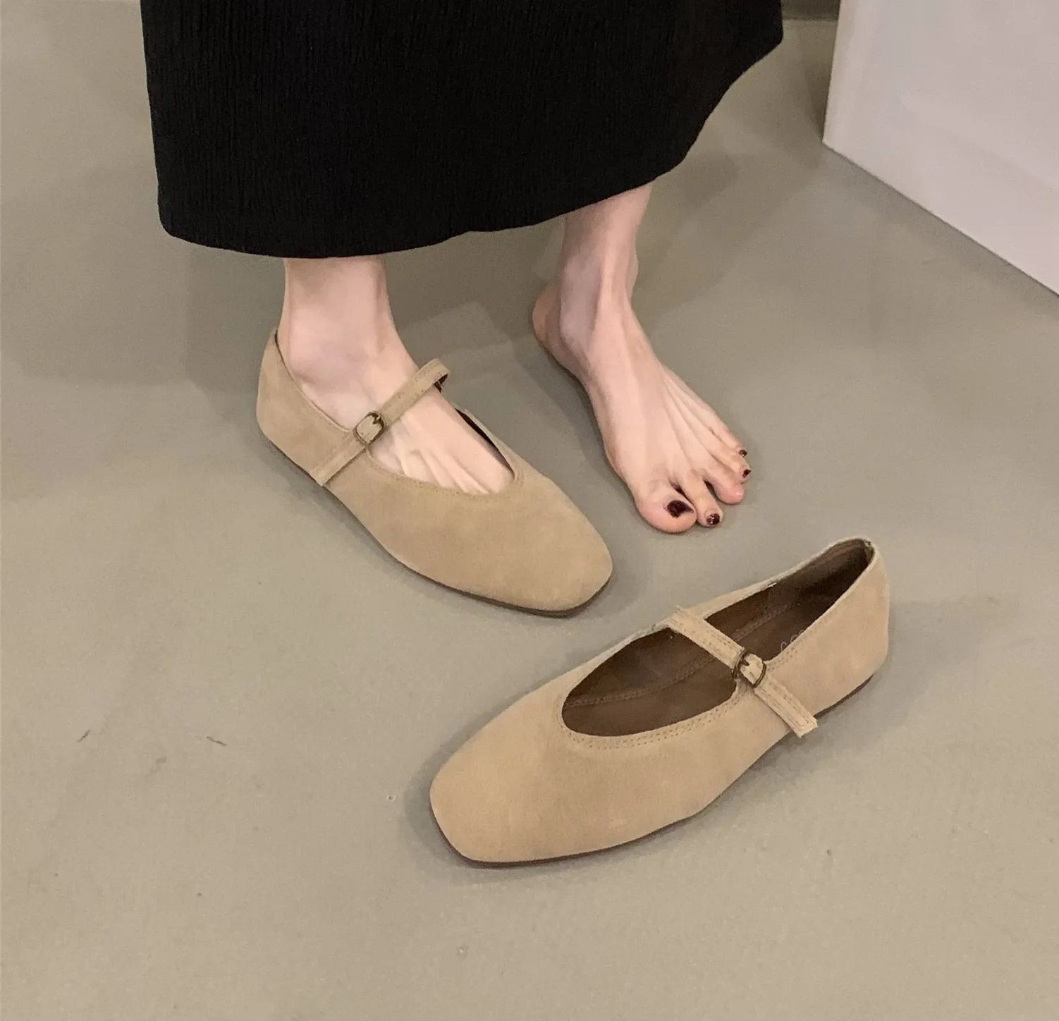 Zapatos planos de punta redonda para mujer, zapatillas de Ballet informales sin cordones, de cuero suave, novedad de primavera, 2024