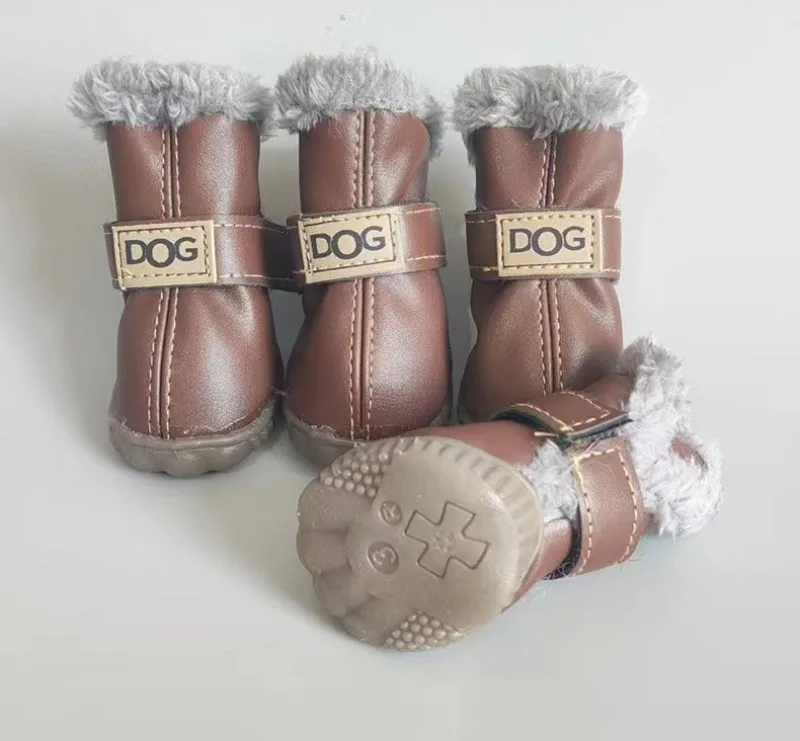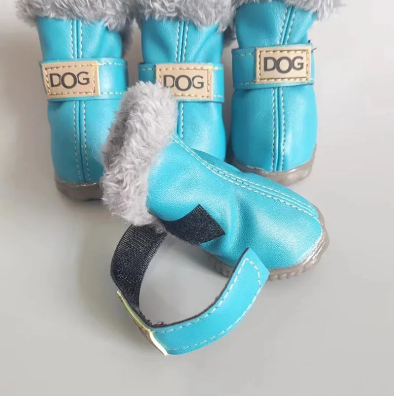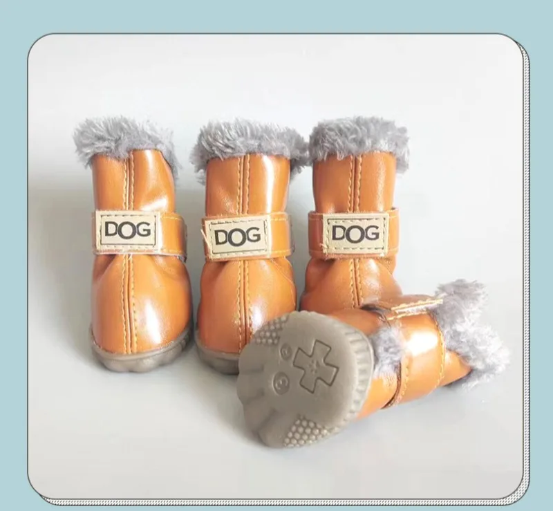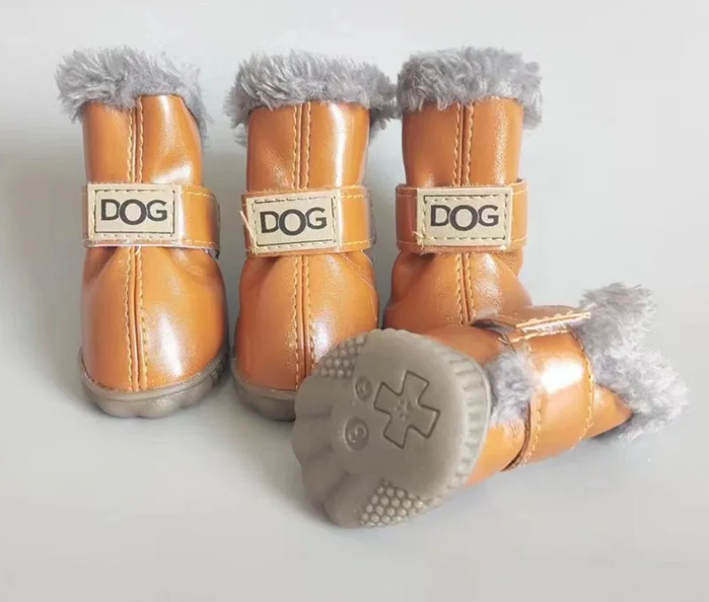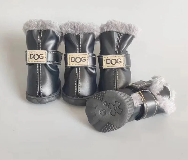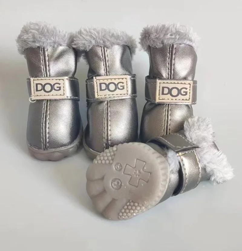 Zapatos de PU de algodón para otoño e invierno para mascotas, un conjunto de cuatro botas de nieve para cachorros, suministros de productos para mascotas, zapatos para perros, accesorios bonitos y cálidos