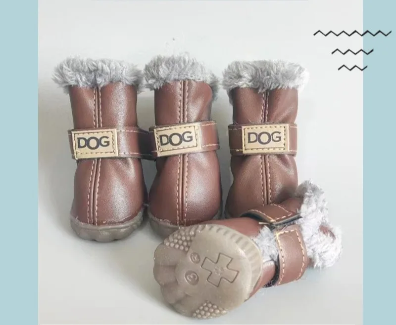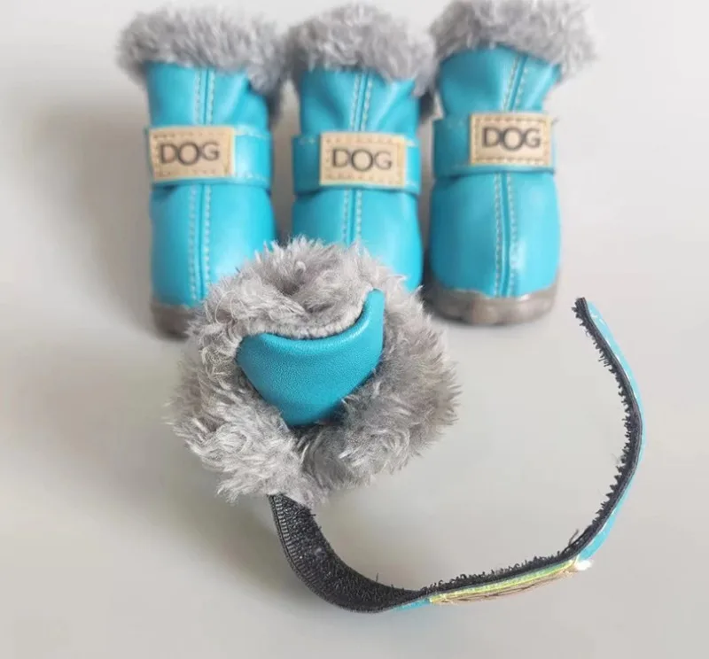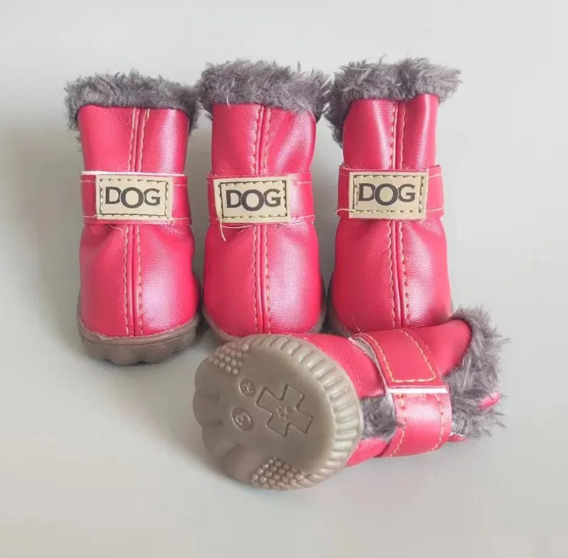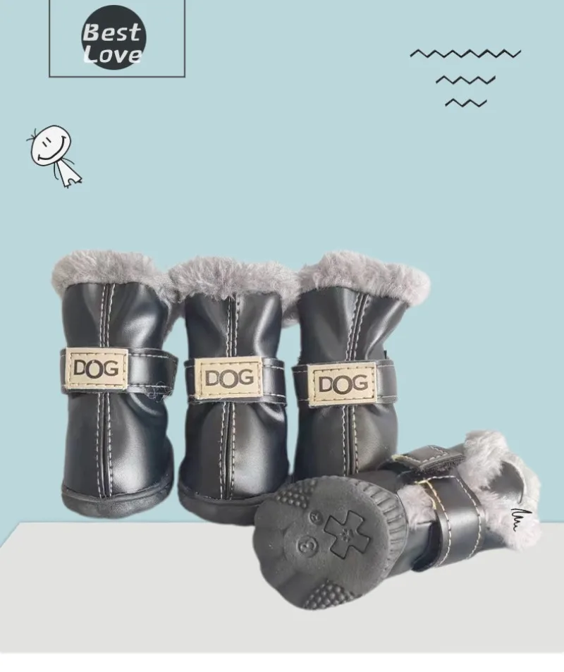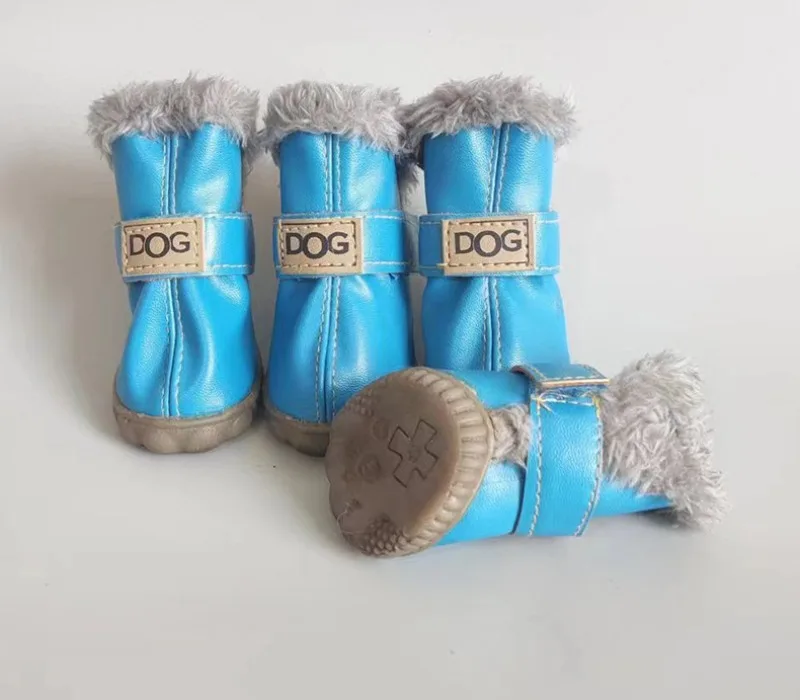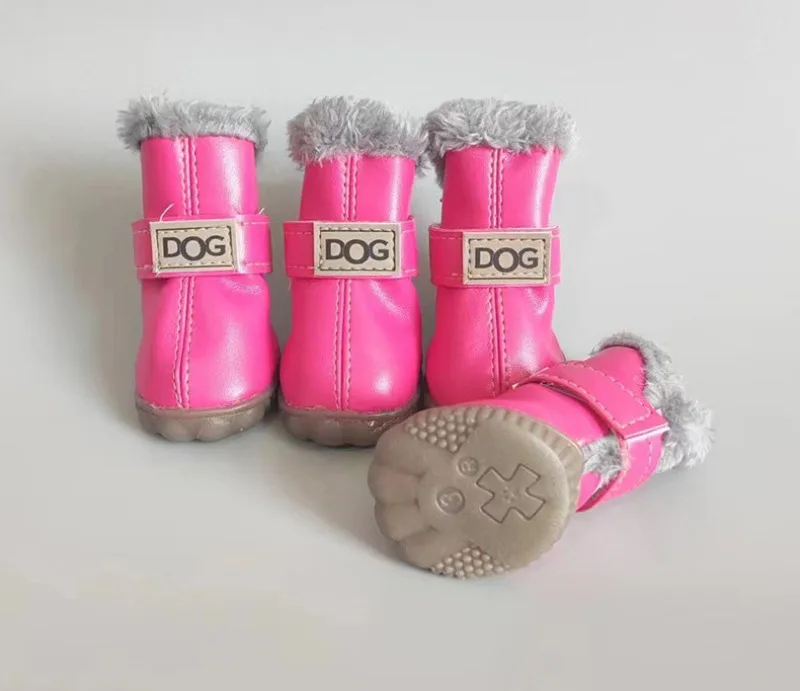 Zapatos de PU de algodón para otoño e invierno para mascotas, un conjunto de cuatro botas de nieve para cachorros, suministros de productos para mascotas, zapatos para perros, accesorios bonitos y cálidos