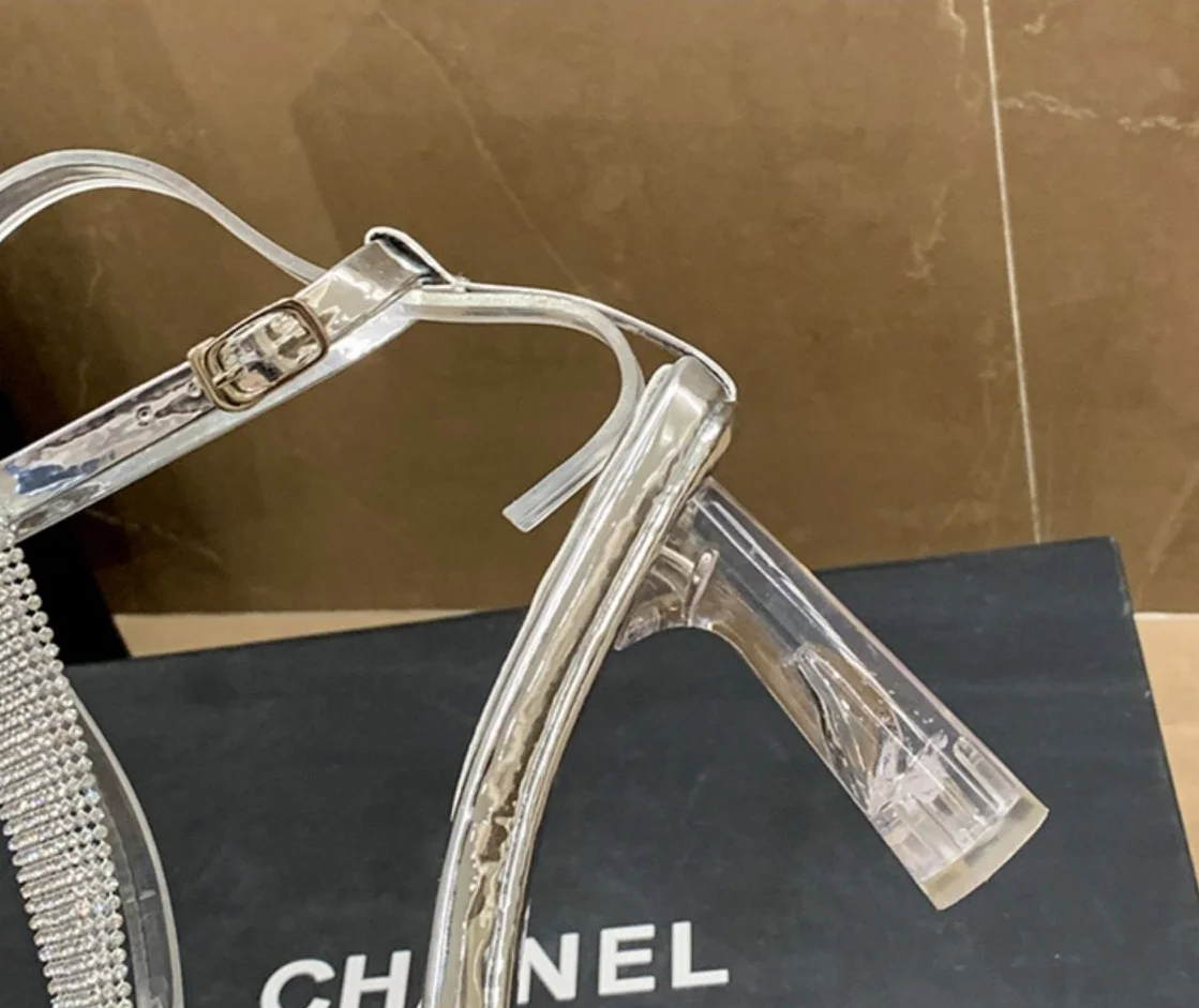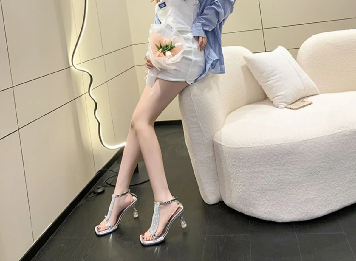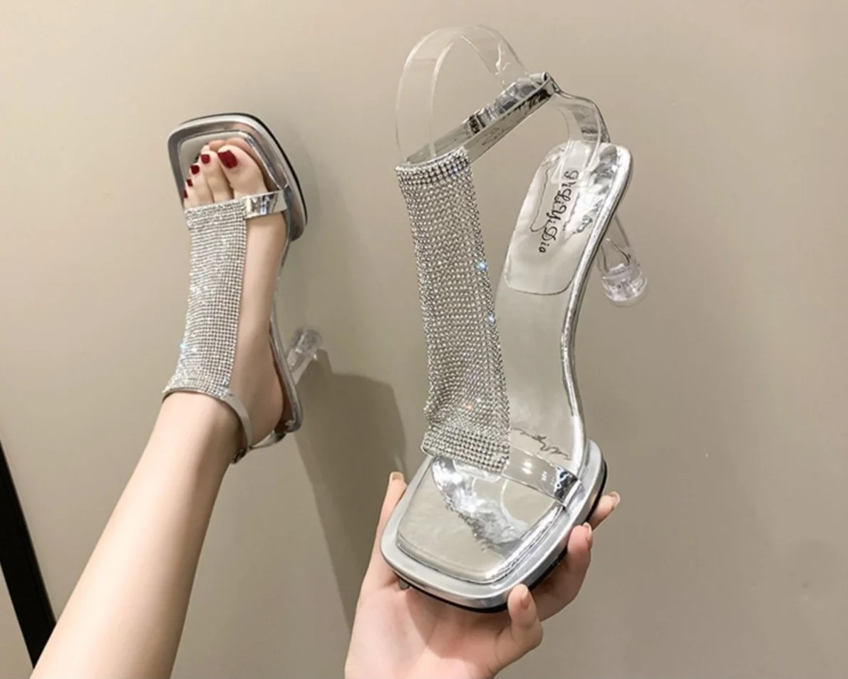Zapatos de tacón alto transparentes para mujer, sandalias gruesas con diamantes de imitación, para verano, 2023