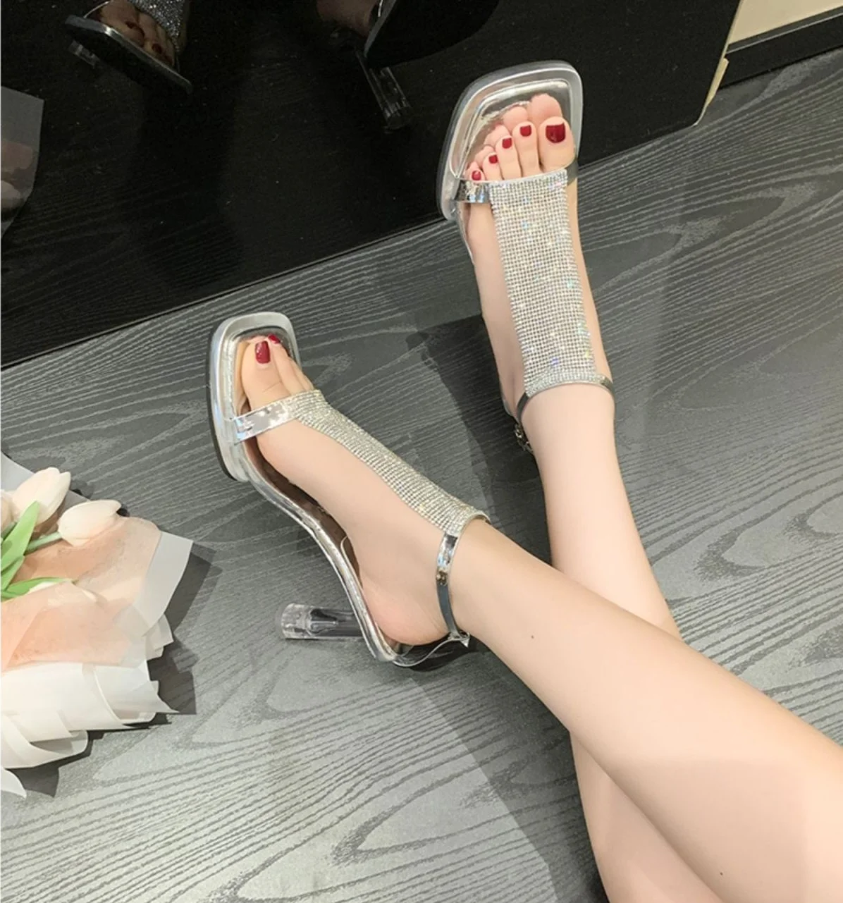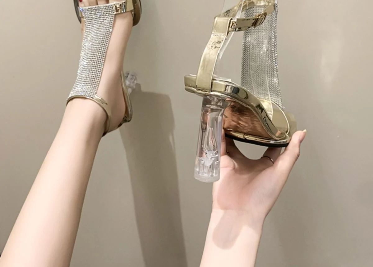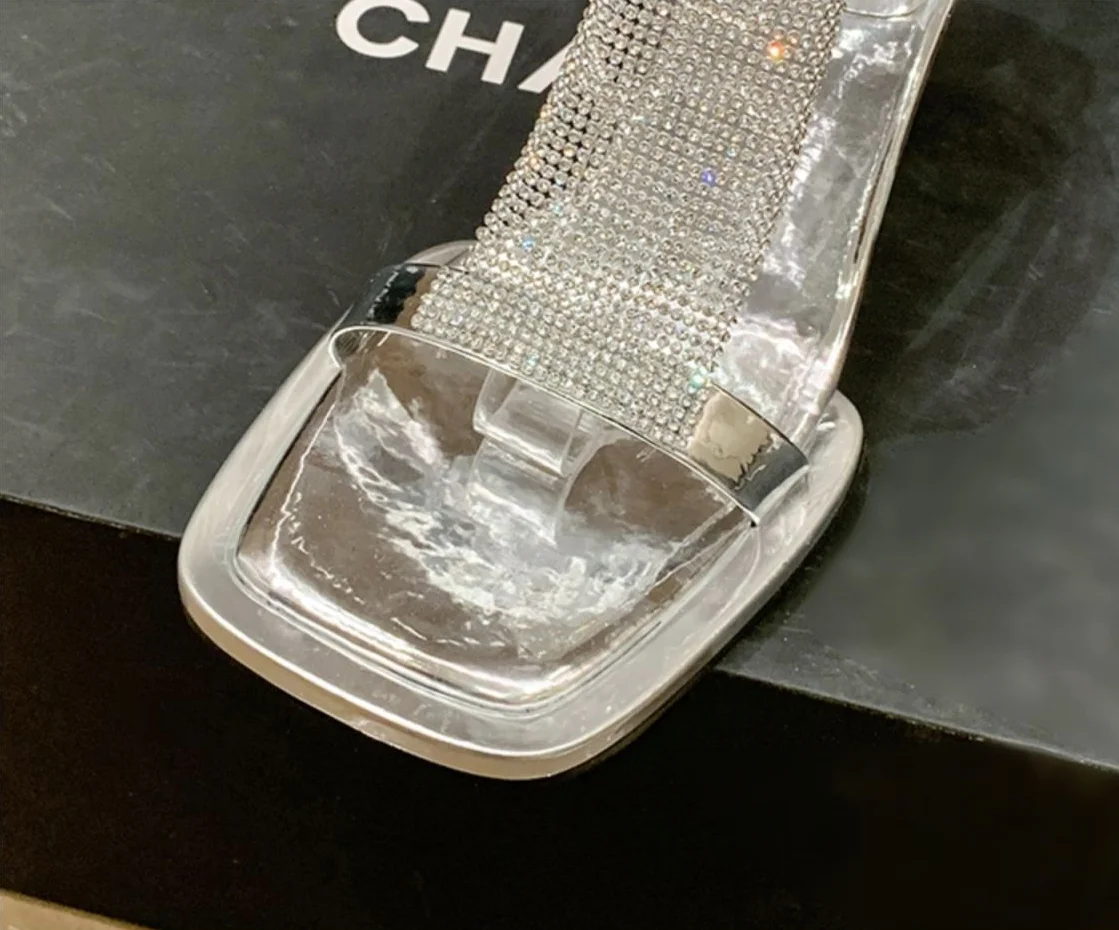 Zapatos de tacón alto transparentes para mujer, sandalias gruesas con diamantes de imitación, para verano, 2023