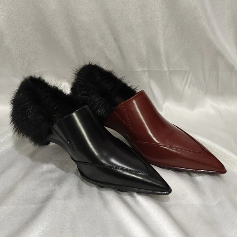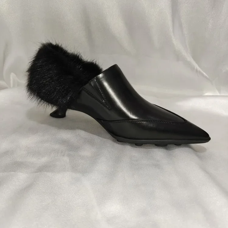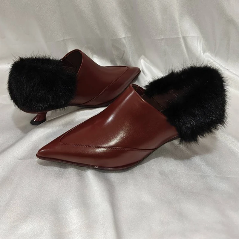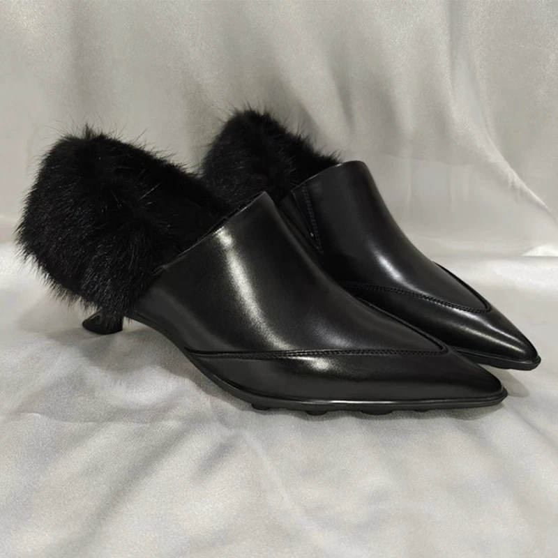 Zapatos de tacón de lujo de piel para Mujer, zapatos de tacón con punta estrecha a la moda, Botas nuevas elegantes de otoño, Zapatillas sexis de diseñador para Mujer