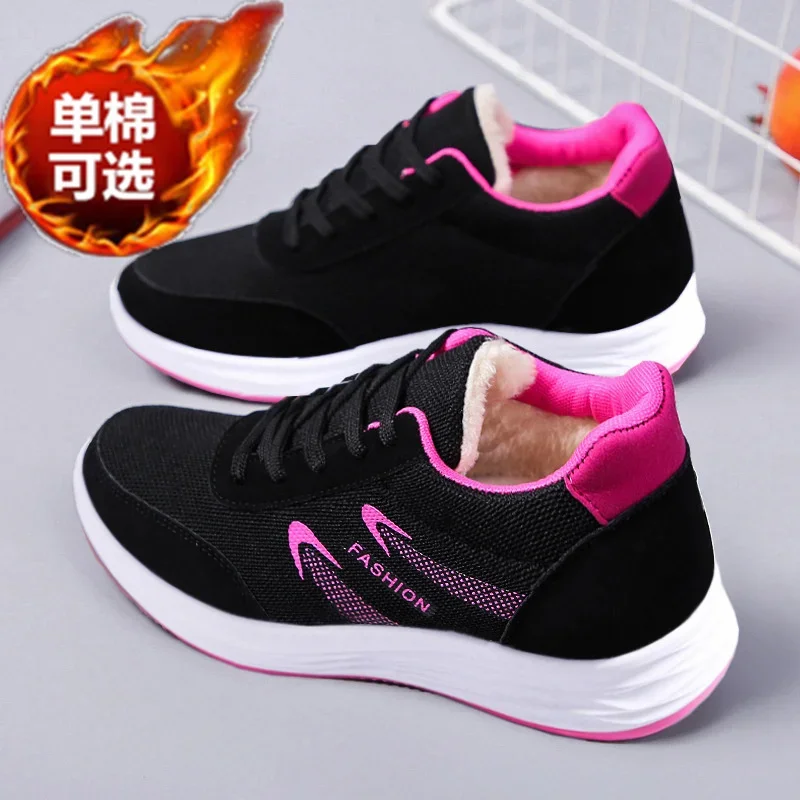 Zapatos de tela con cordones para mujer, Zapatillas de algodón gruesas, cálidas, de felpa, ligeras y suaves, informales, Invierno