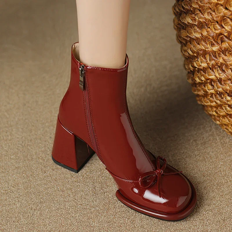 Zapatos tobilleros de nieve para mujer, tacones altos, zapatos de moda, botas de invierno de cuero grueso de diseñador, nuevo vestido de tendencia 2025