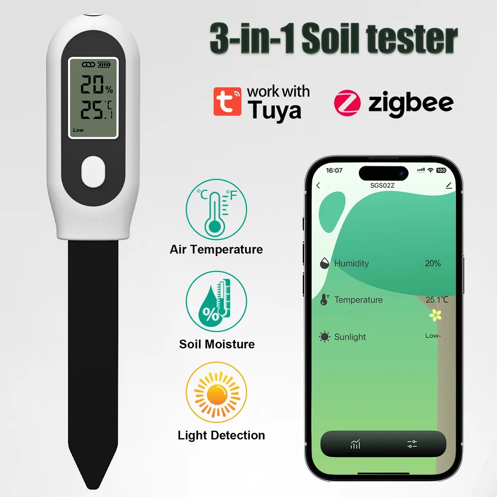 Tuya Zigbee probador de suelo Sensor de suelo inteligente Detector Digital de humedad del suelo temperatura humedad medidor de luz solar para macetas jardín