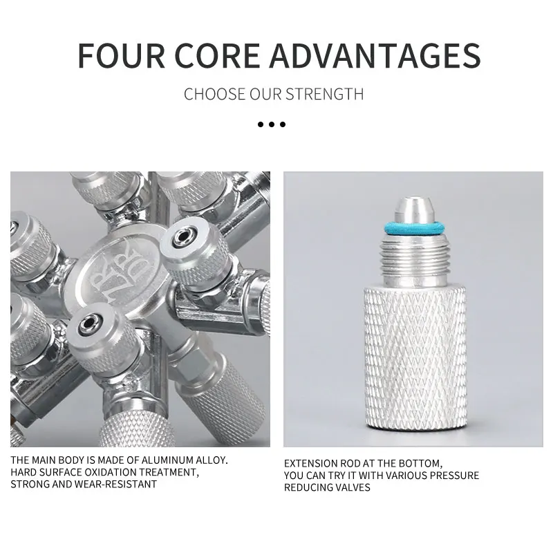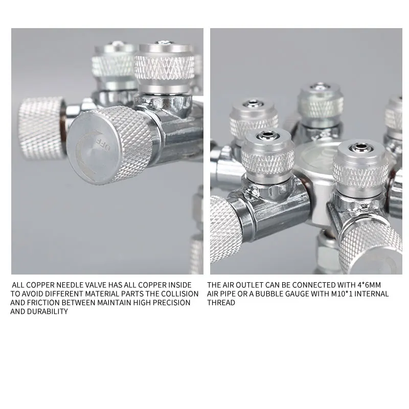 Proporciona la comodidad en la distribución del flujo de aire de hasta 2-6 tanques diferentes.